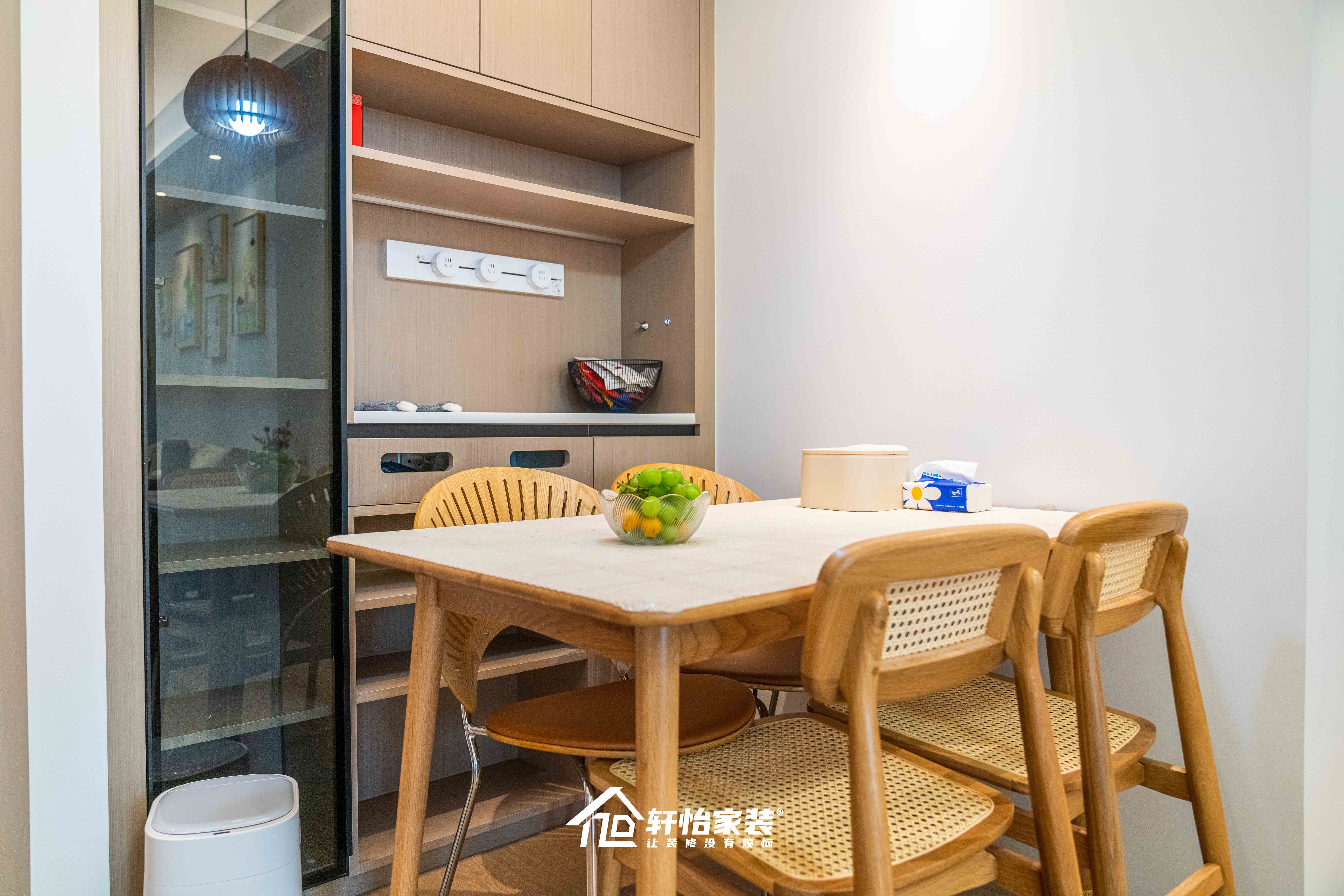 餐边柜左侧玻璃柜设计,视觉上拉伸层高,开放、封闭与抽屉的布局灵活多变,满足各类收纳需求。