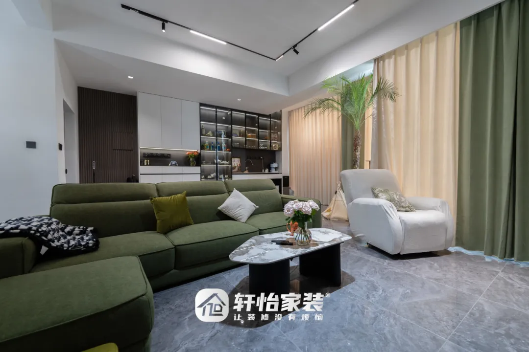 轩怡家装的全屋整装设计从玄关到主卧,每一处都充满了设计师的匠心独运和屋主对生活的热爱与追求。整个设计以自然元素为灵感,将室内空间与外部环境相融合,营造出一种宁静、舒适且充满生机的居住环境。