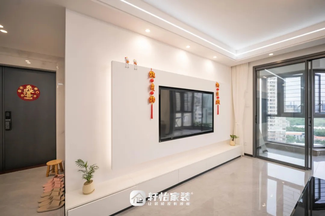 电视墙则放弃了繁琐的色块堆叠,以光为笔绘出多变阴翳,退隐为电视背景,简约而不失设计感。