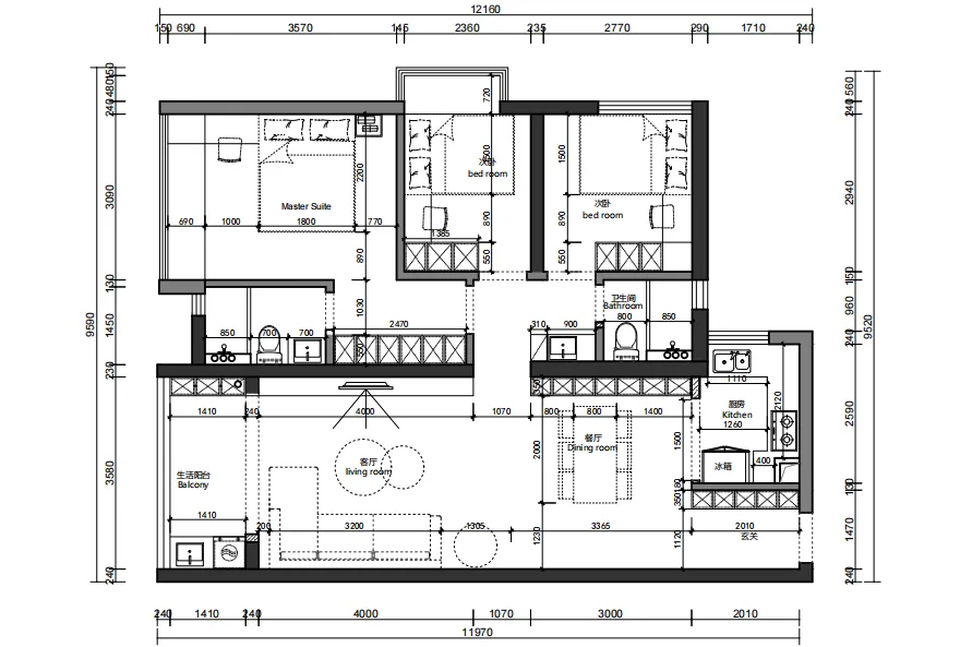 阳台纳入客厅,打开立面引入天光;石纹瓷砖通铺,纹理连枝,气势磅礴;公卫洗漱台外置,功能区分离,使用方便。