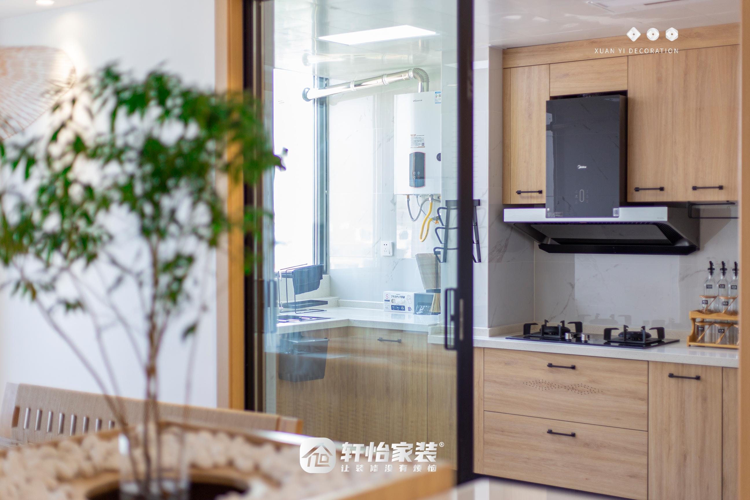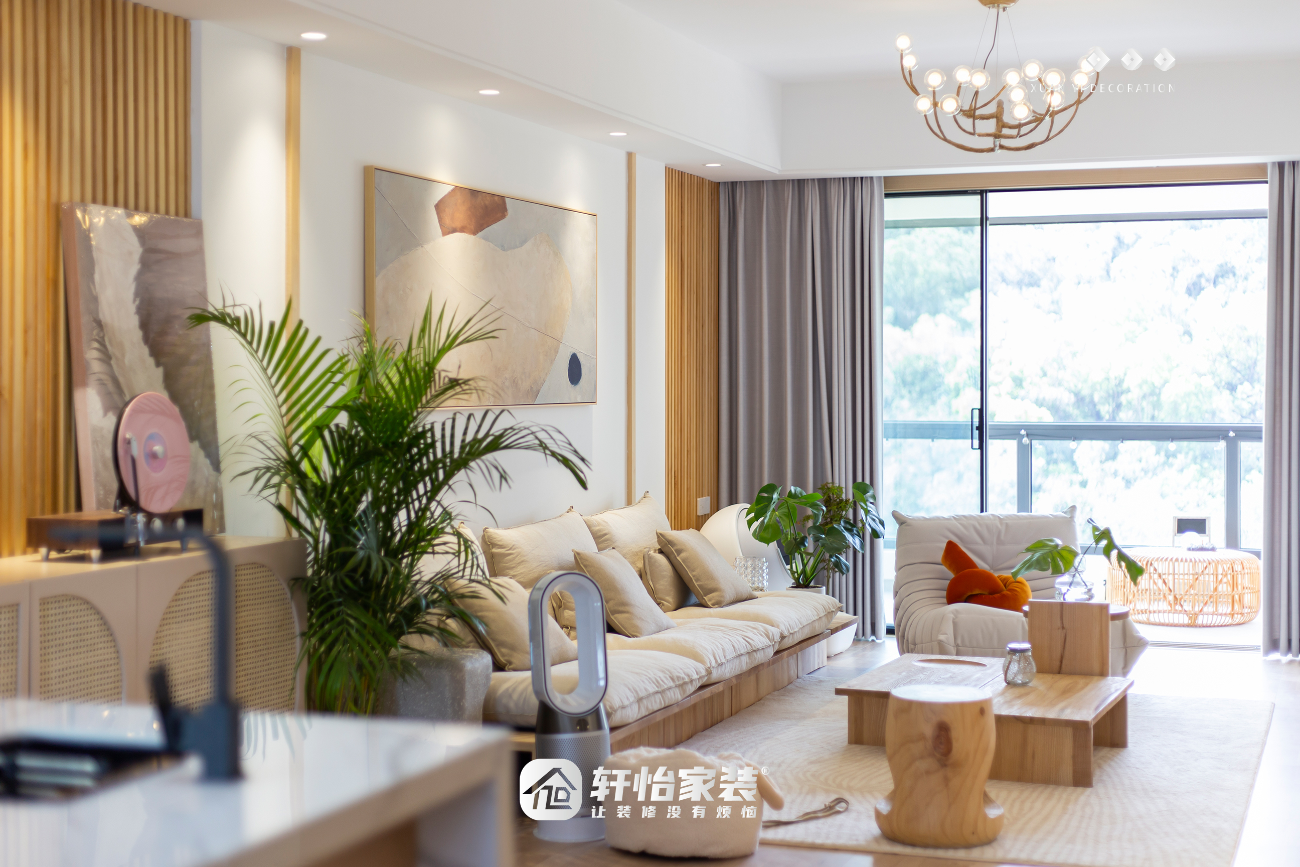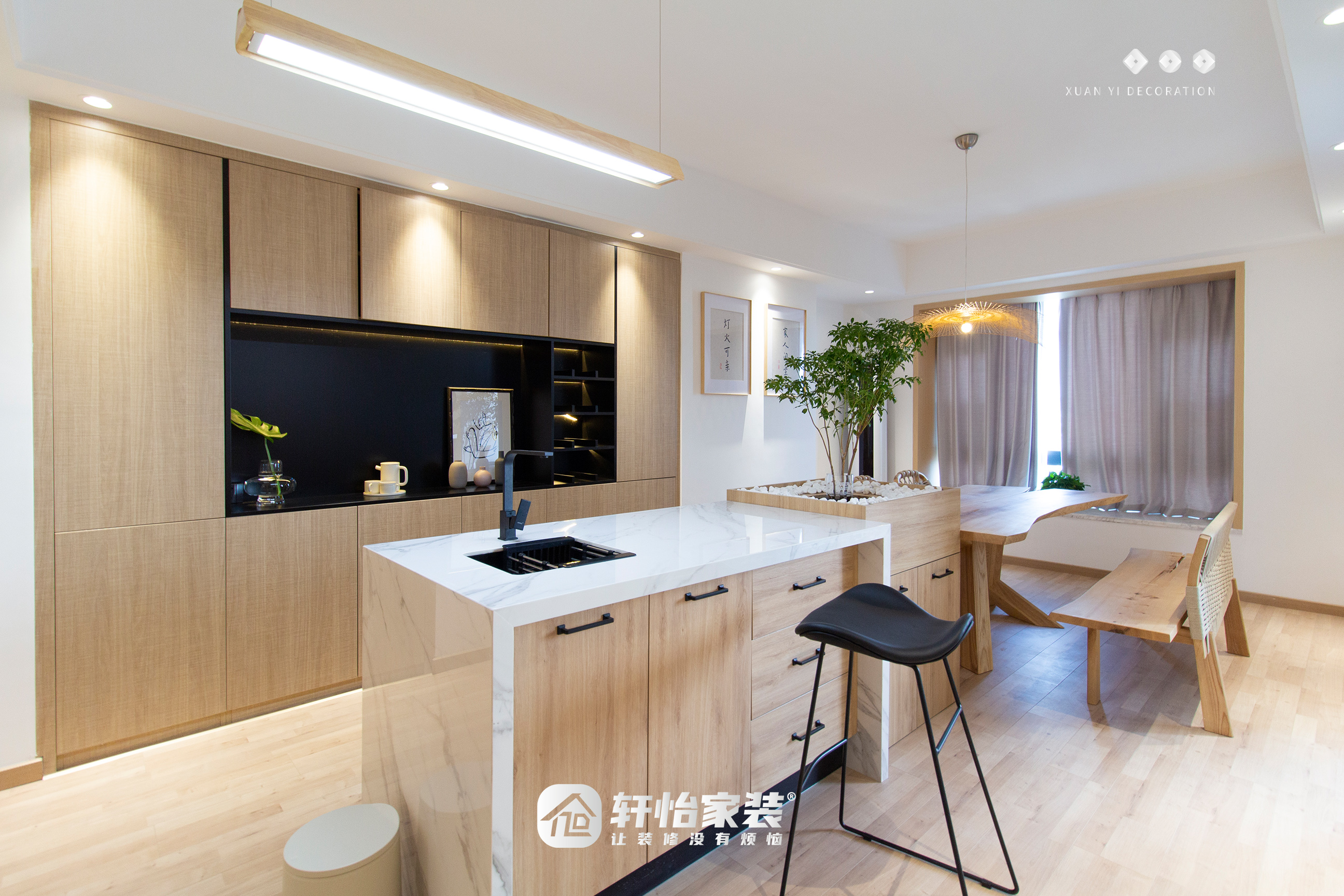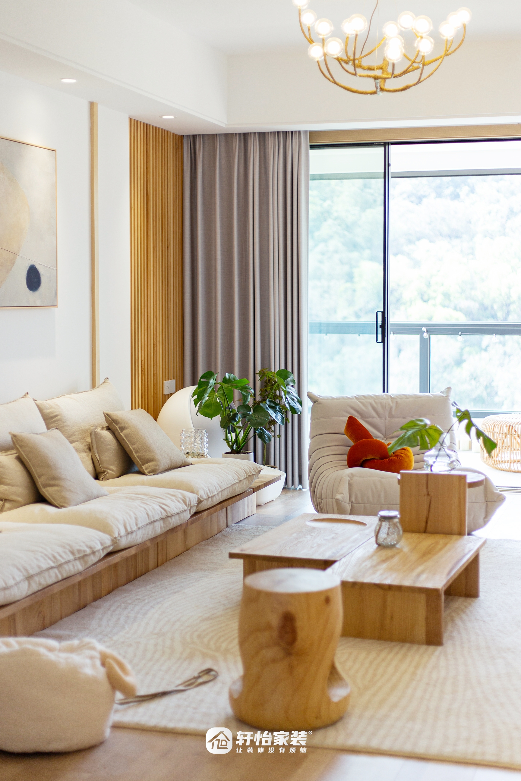 区域铺满暖白和浅米色调,包裹着纹理细腻的木质,阳光漫步在各个角落,原木的自然意蕴与现代设计的简明彼此相融。