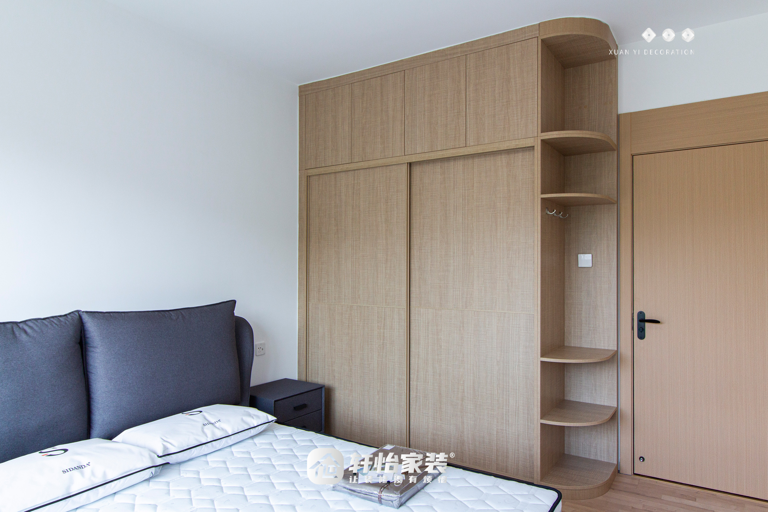 次卧白色+木色的简约感,塑造轻松舒适的睡眠空间。宽大的床靠,为久卧的劳累提供放松方式。