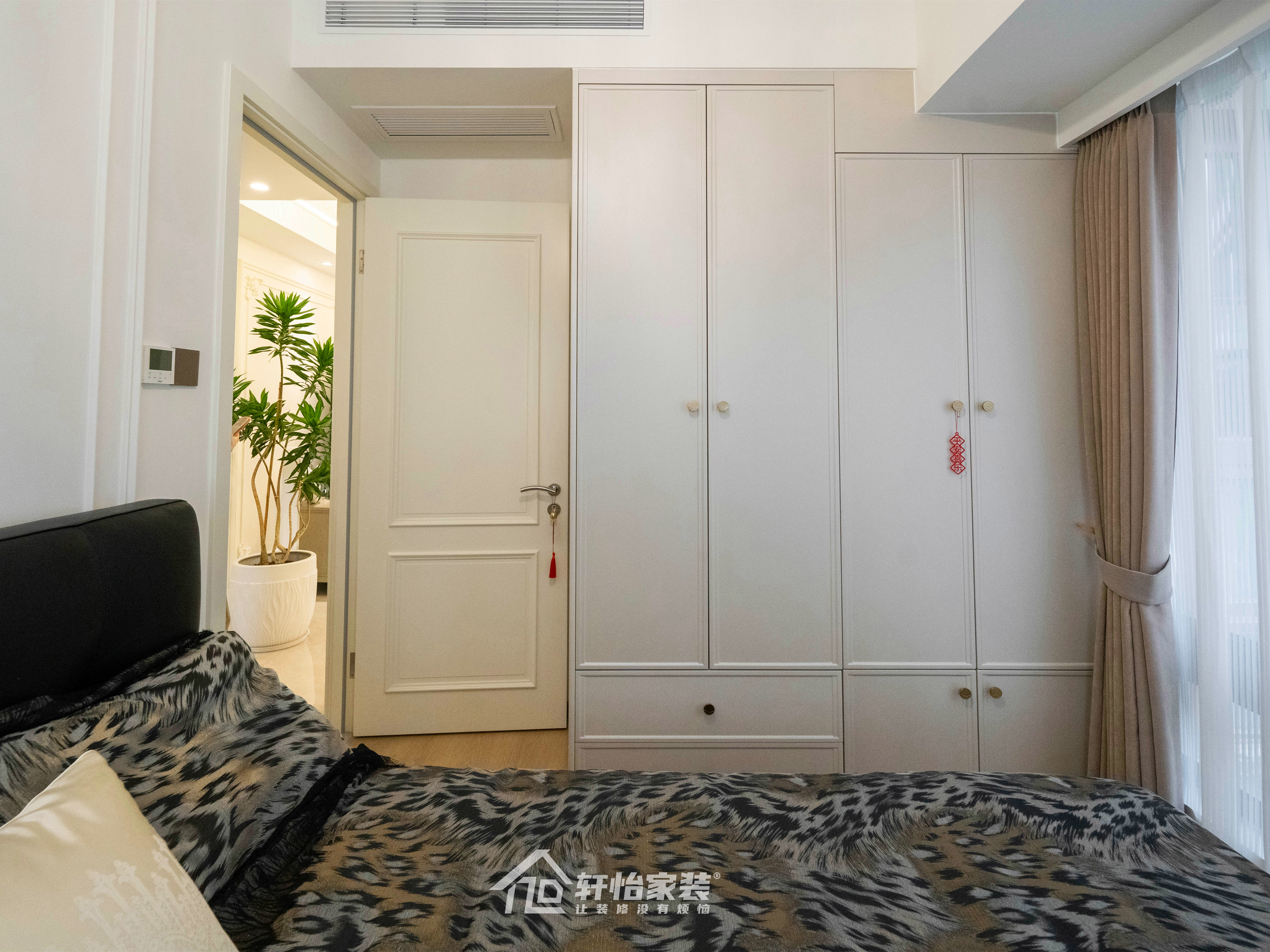 卧室另一侧设计顶天立地定制柜,浅色系营造卧室好睡的氛围,收纳能力也满满好用