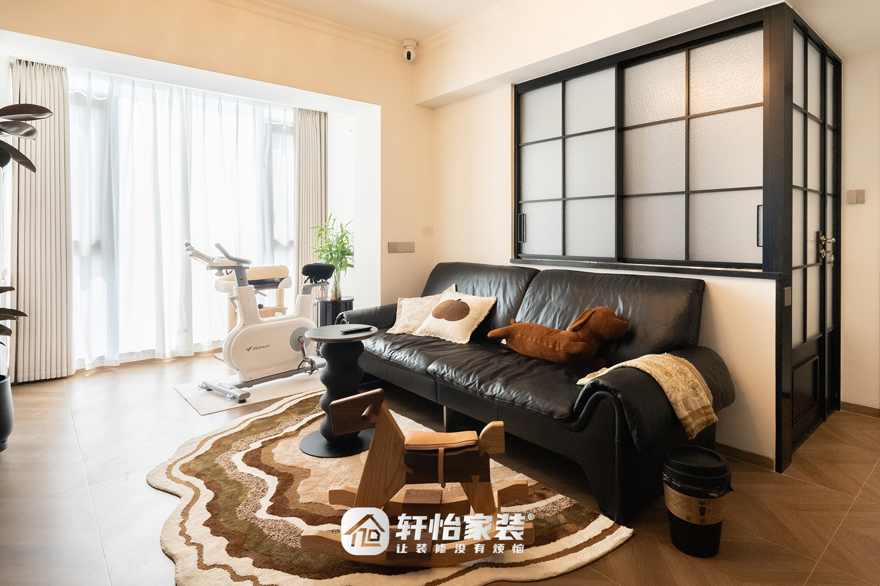 沙发、边几等家具在颜色和材质上层层递进,强化复古气息,而小木马、抱枕等软装则在细节处营造出随性温馨的生活氛围。