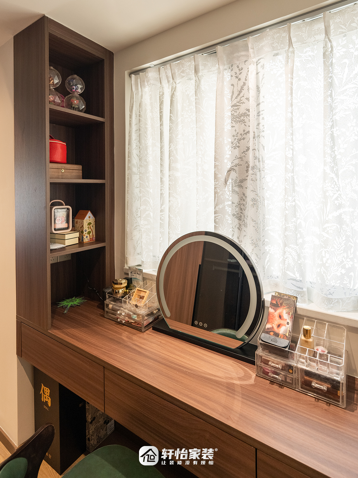 通过拆除隔断,不仅获得了强大的收纳系统,还成功规划出一个靠窗的独树一帜梳妆区,充分满足了女主人的日常生活需求。
