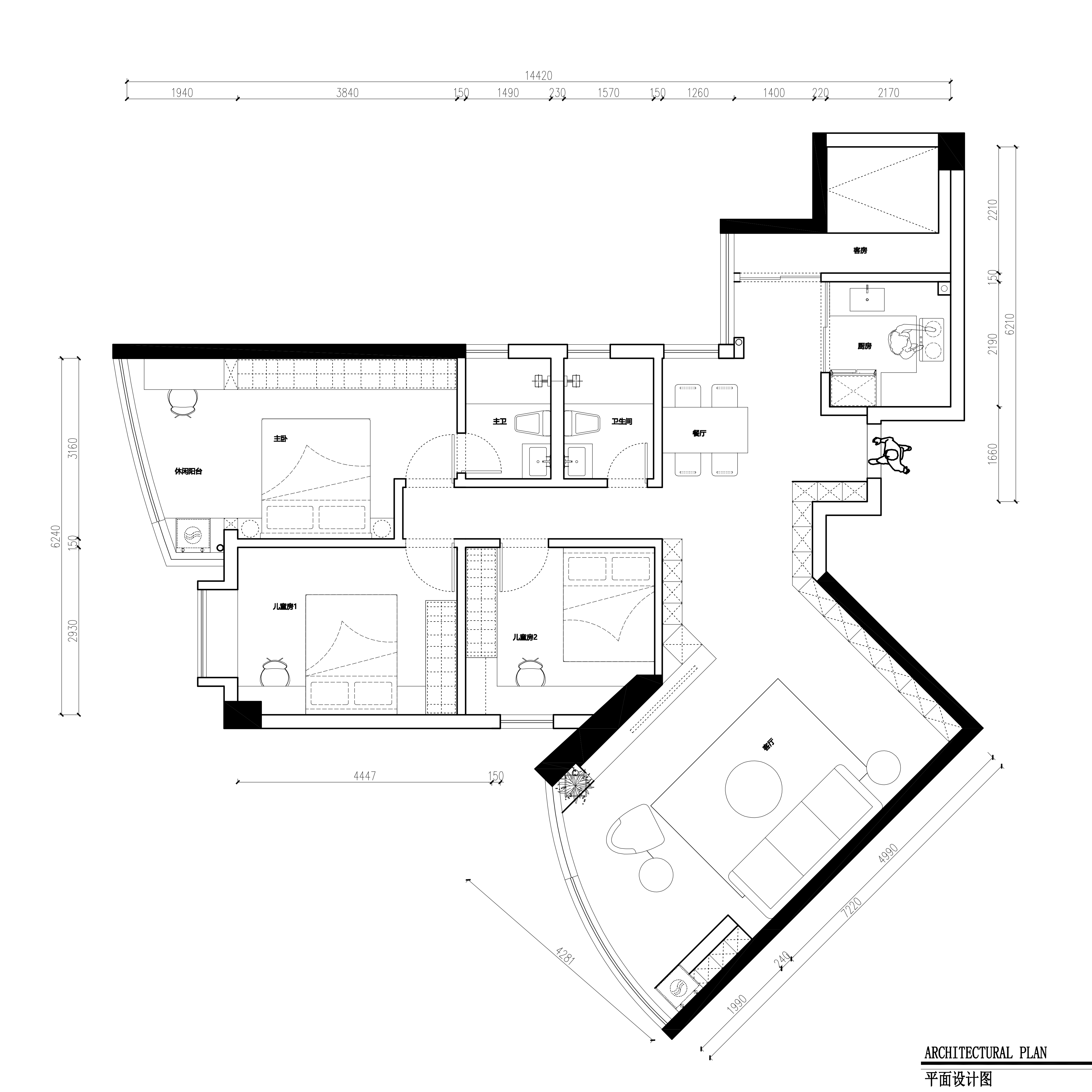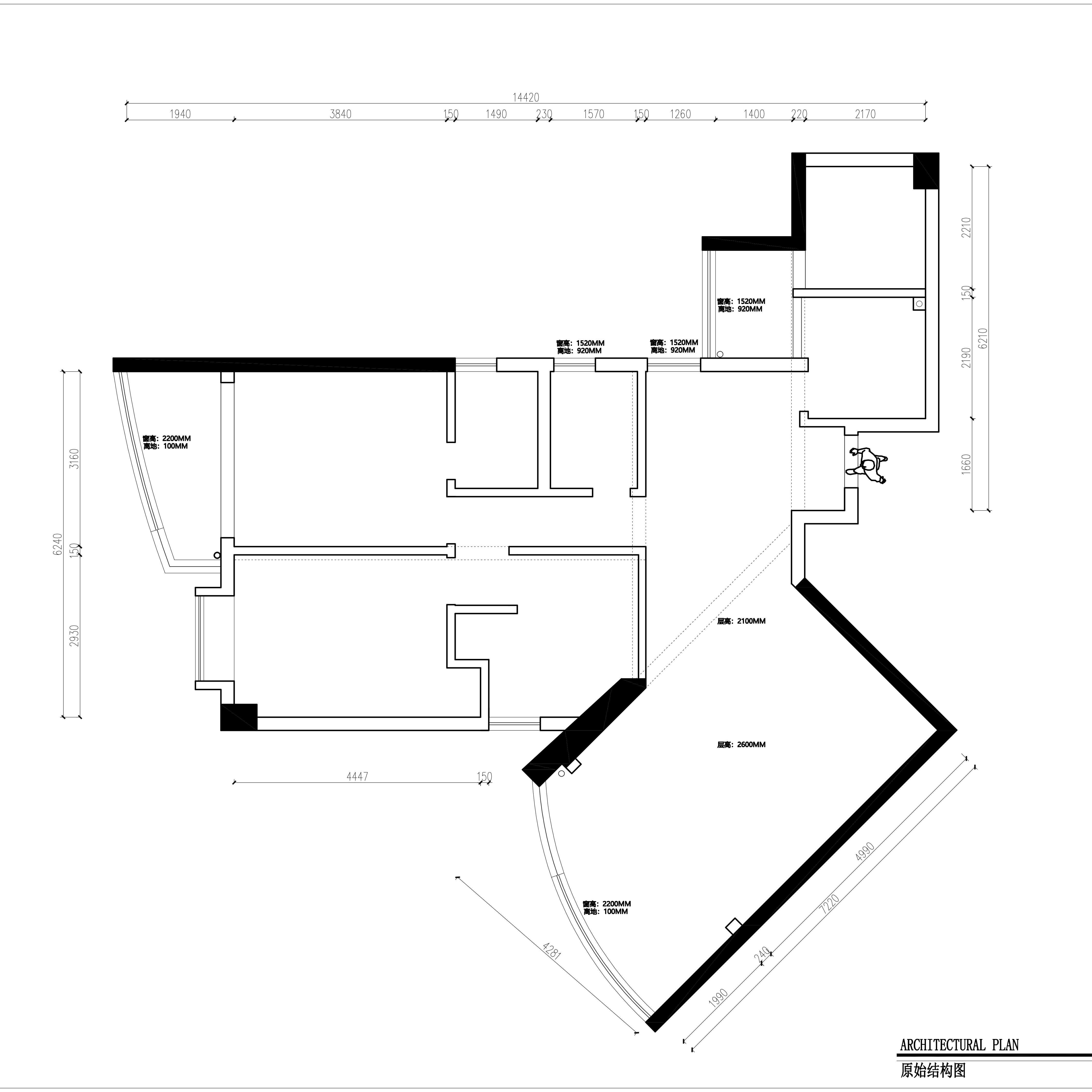 1、原始格局不够方正,从玄关到客厅区域不够通顺;