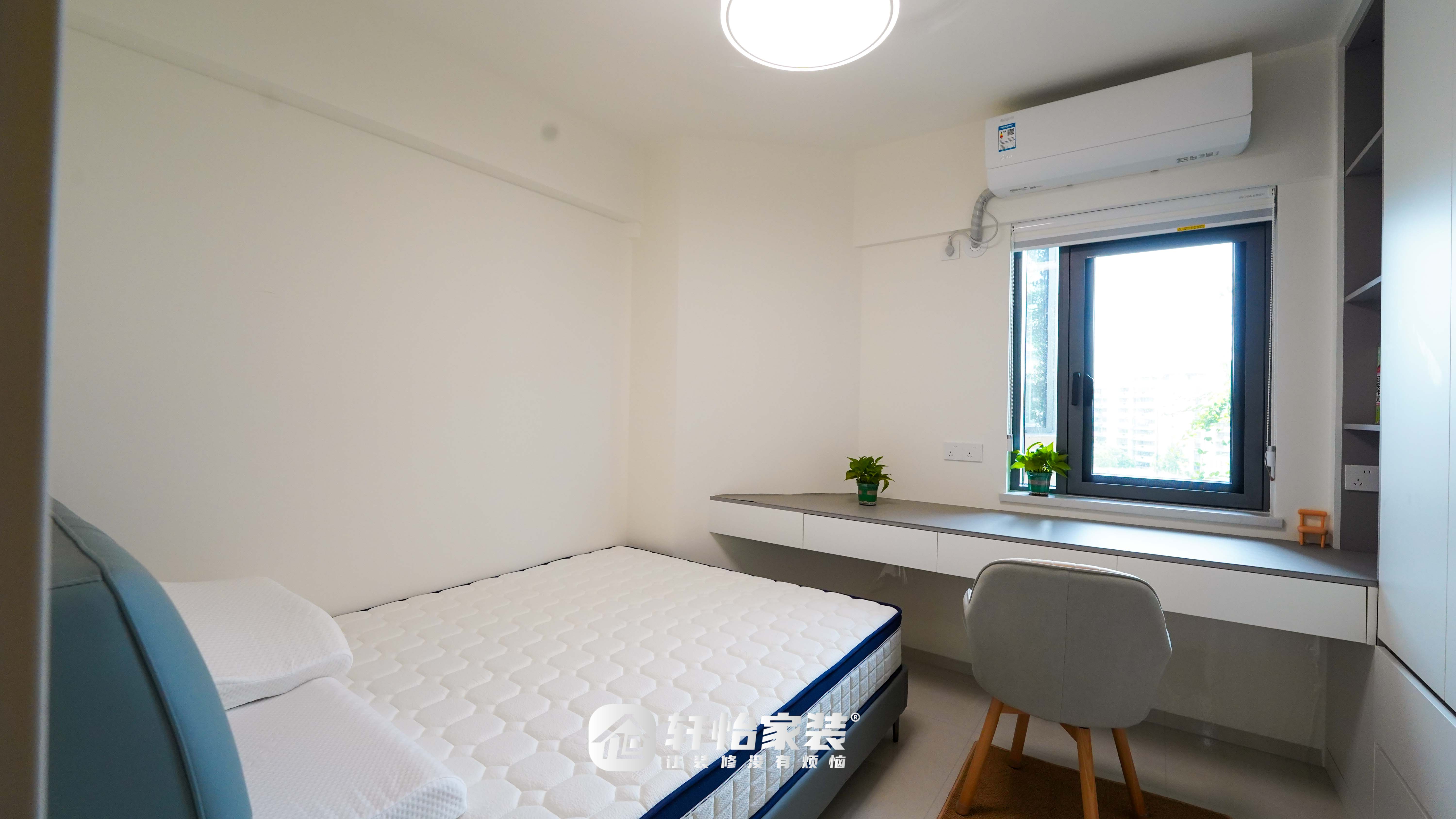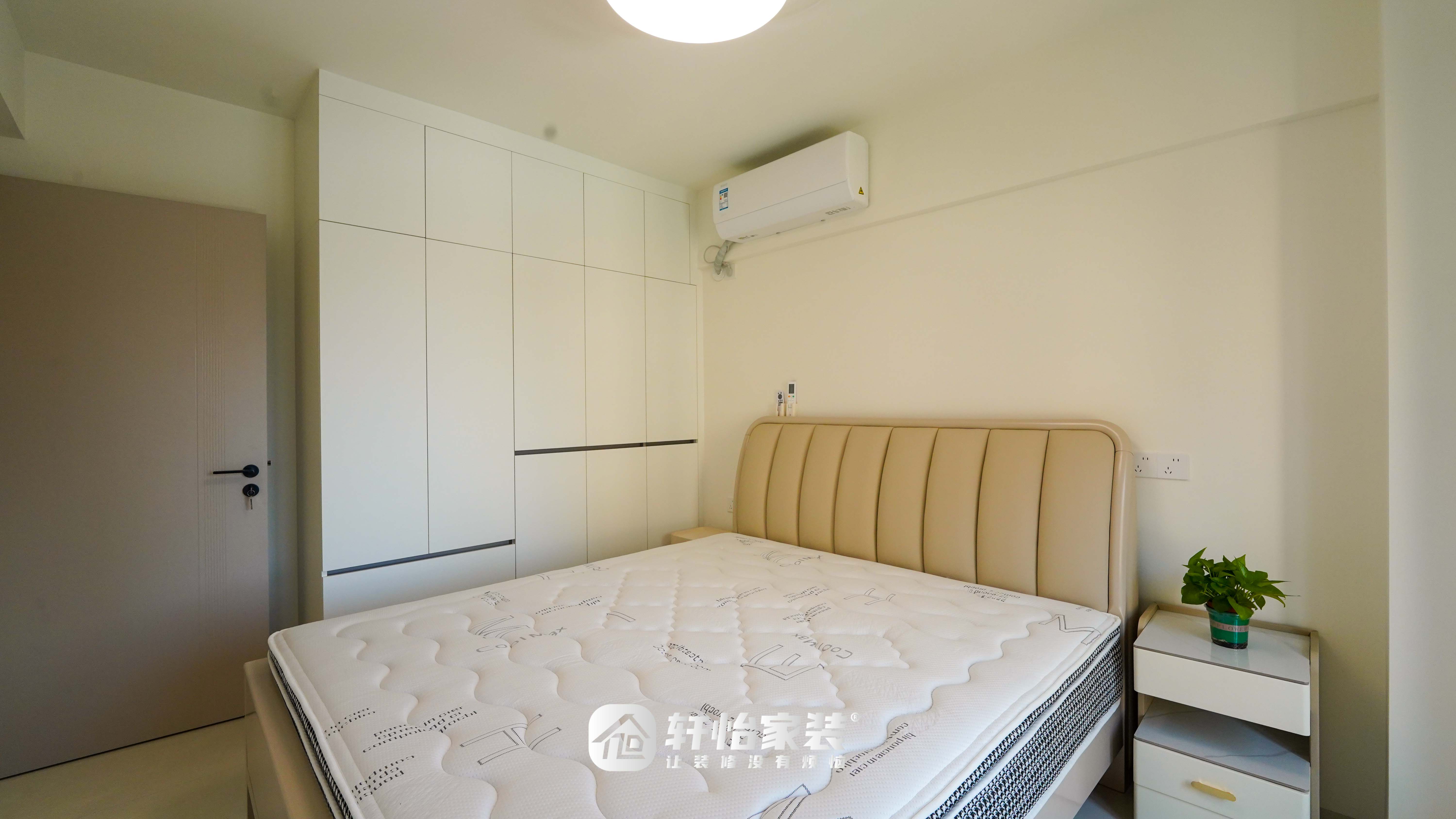 在主卧和次卧的规划中,轩怡家装通过整墙到顶定制衣柜提供惊人收纳容量,巧妙借用墙体延伸出定制书桌,满足睡眠、办公等多重需求。这种设计特别适合注重装修预算的业主,能以合理更了很多实现理想效果。