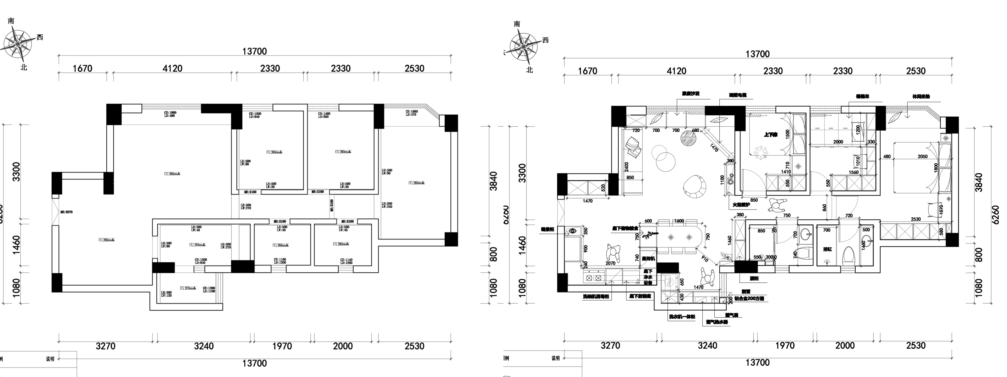 原厨房采光较差,且与客餐厅分离。开放式处理实现格局通透,也强化了功能区的社交属性,构绘出家的新风貌。