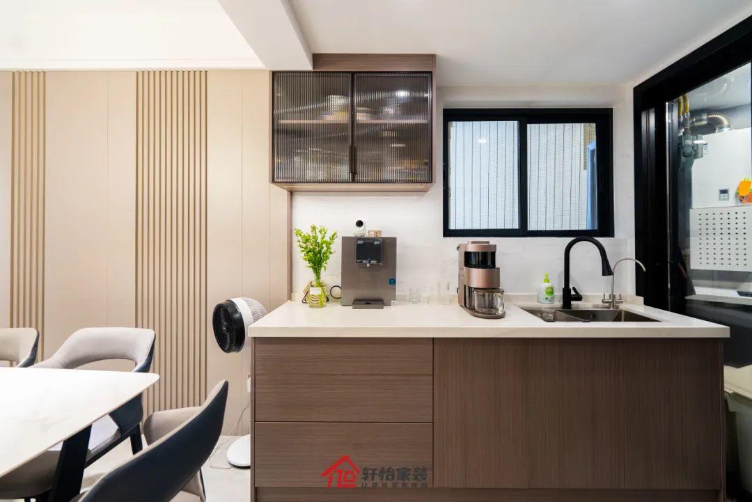 橱柜巧妙倚墙而建,重塑厨房动线,使下厨过程更加流畅自如。这一设计不仅充分利用了空间,还巧妙化解了异形空间的尴尬,让厨房整体布局更加和谐统一。在这里,烹饪成为一种享受,每一道菜肴都蕴含着家的温馨与美好。