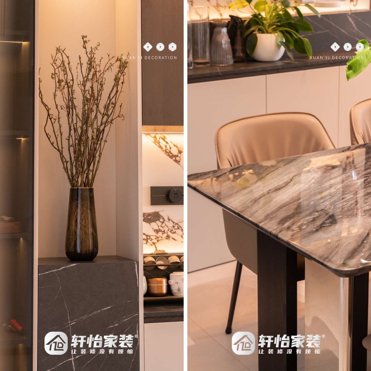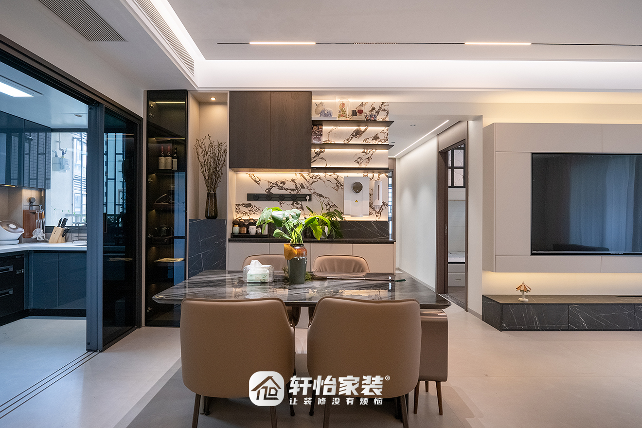 业主评价:“我们非常满意轩怡家装这次的装修效果,整个团队从设计到施工都非常负责,广佛装修的业主们可以考虑。装之前担心意式极简风会显得冰冷,但设计师通过材质和灯光完美地平衡了质感和家的温度。特别是整个家的定制柜,既好看又实用,现在每天回家都感觉是一种享受。”