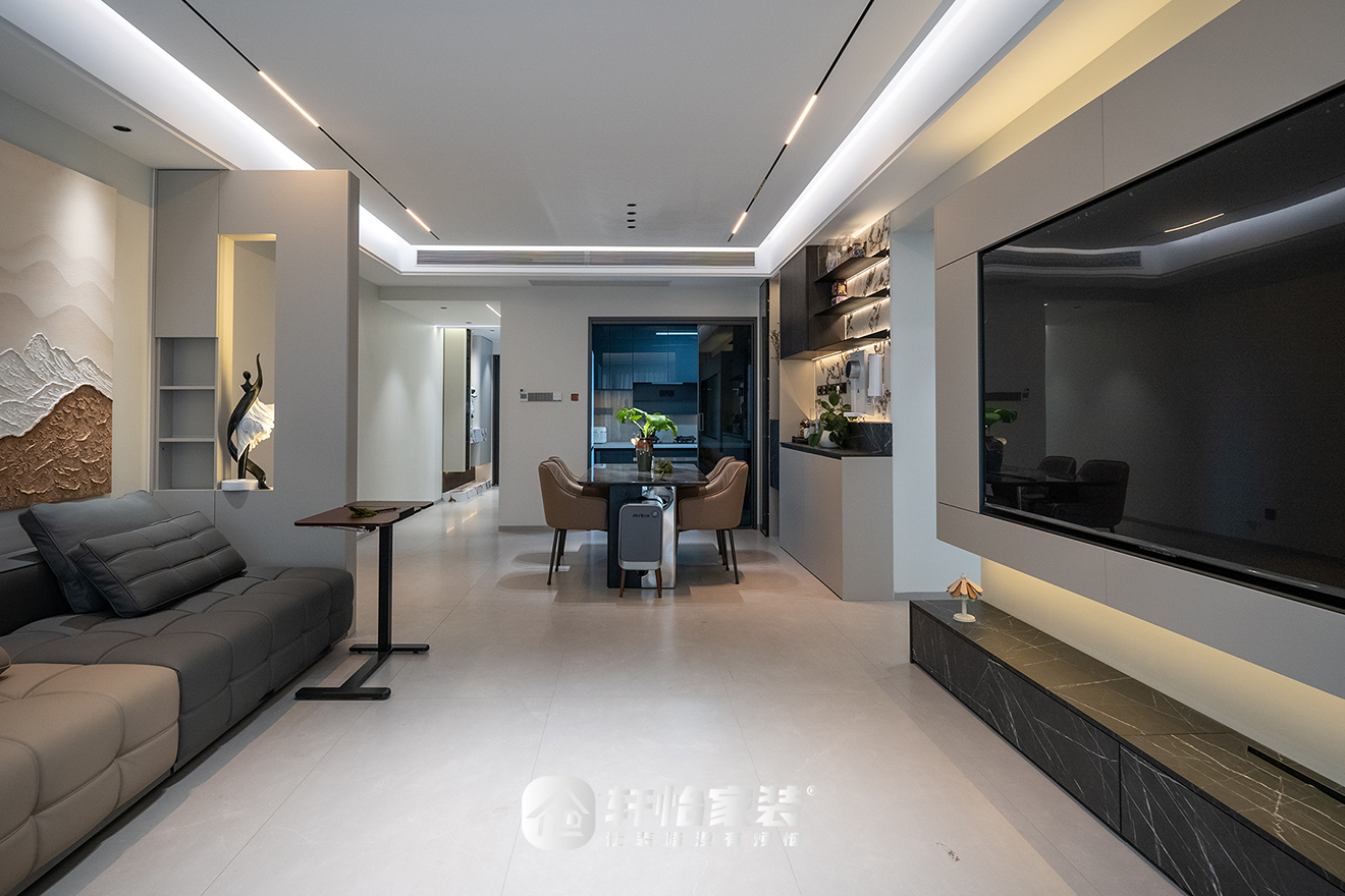 绕行过隔断,客厅具体的结构得到进一步展现。通铺叠加无主灯,轩怡家装以不厚重的层次变化,构建空间整体感,将竖厅魅力充分发挥。
