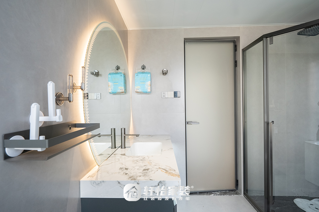 针对业主生活需求,轩怡家装做出细致回应。淋浴房与浴缸的兼备,智能马桶与加长台盆的舒适,生活在设计的精细中得到了圆满。