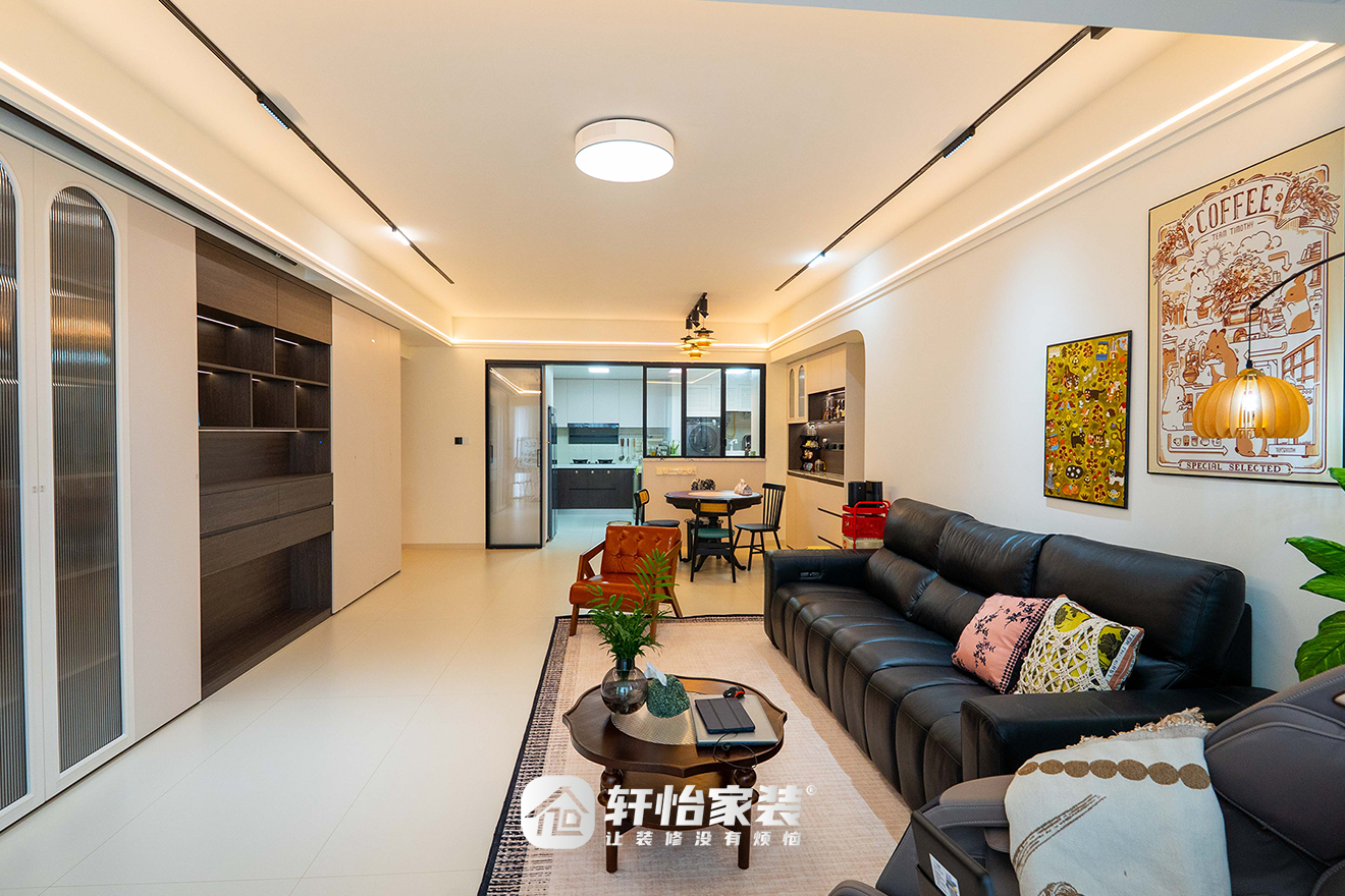 业主评价:“开始只是想要一个奶油法式风的家,但轩怡家装给了我们远超预期的惊喜。尤其是玄关的储物间和厨房合并阳台的设计,收纳压力真的小了很多。现在入住后,邻居来参观都说我们家看起来比实际面积大不少,设计得非常巧妙。整个装修过程沟通也很顺畅,很感谢设计施工团队的付出!”