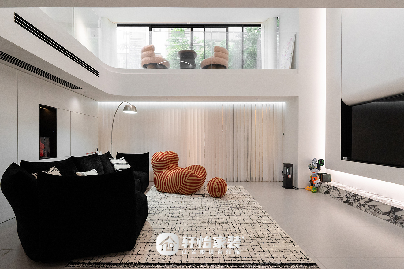 如何化解别墅结构难题,让家成为舒适明亮的诗意栖居地?本案中,轩怡家装凭借其巧妙的设计手法,巧妙地将结构劣势转化为艺术优势,通过一系列开放、通透的设计,打造出一个光影流动、功能与美学兼具的理想大宅。
