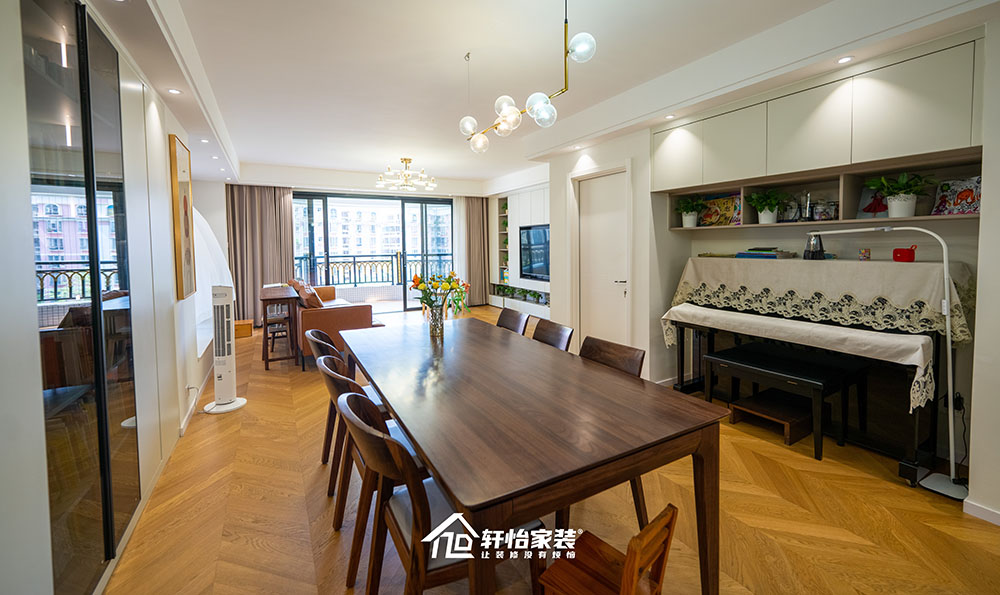 ②利用餐边柜嵌入收纳钢琴,提升客餐厅情调;