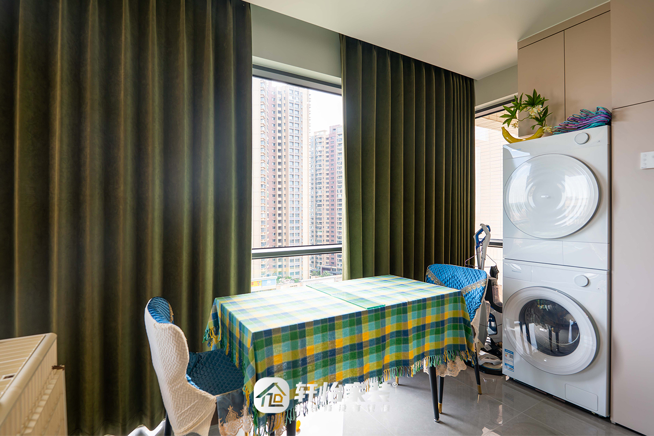 将阳**全纳入客厅。此举不仅极大延展了视觉尺度,使空间通透明亮倍增,更创造出一个多功能复合区域,“观景、闲坐、家政、宠物区”四位一体,实现了人宠共乐、互不干扰的理想状态。