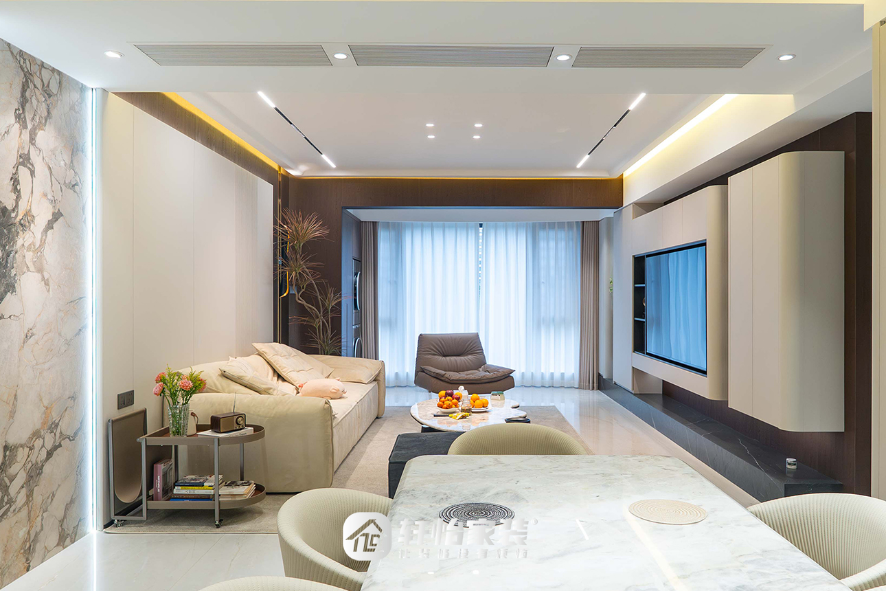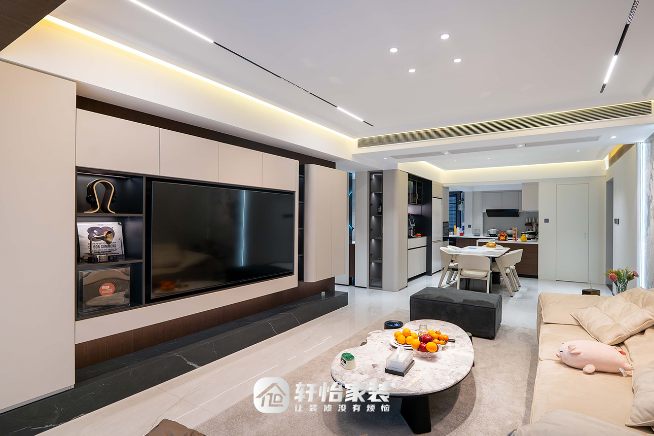 轩怡家装以现代简约风为基调,以5大生活方式为发生点,通过一系列精妙的空间重构与动线梳理,将这个家的重心从「形式的统一」转向「生活的流动」,让光与空气在室内自由穿行,成就兼具松弛感与功能性的宜居地。