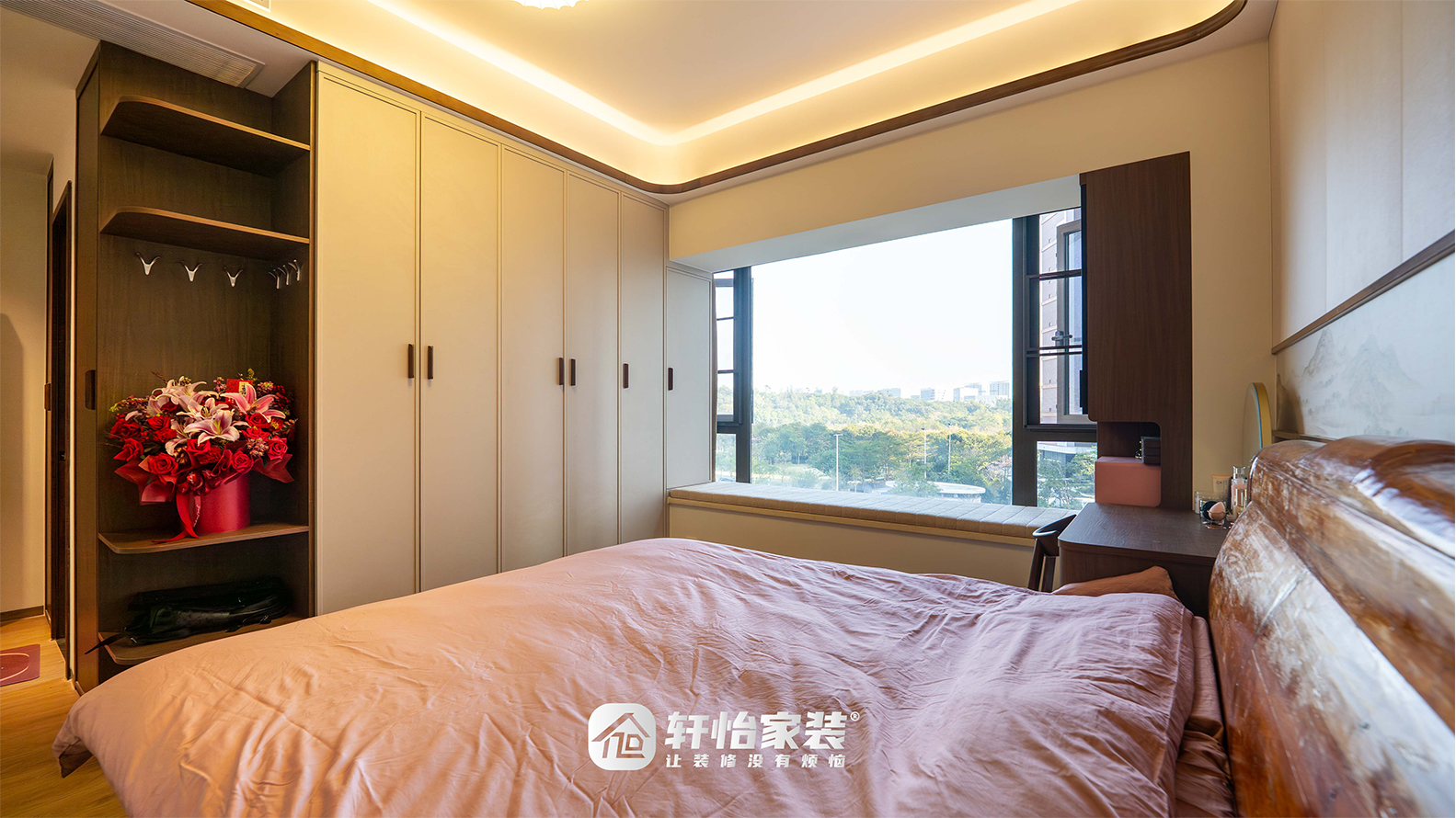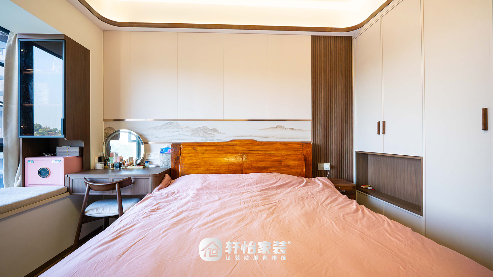 床尾与侧边均设定制到顶衣柜,收纳能力堪比个立衣帽间;