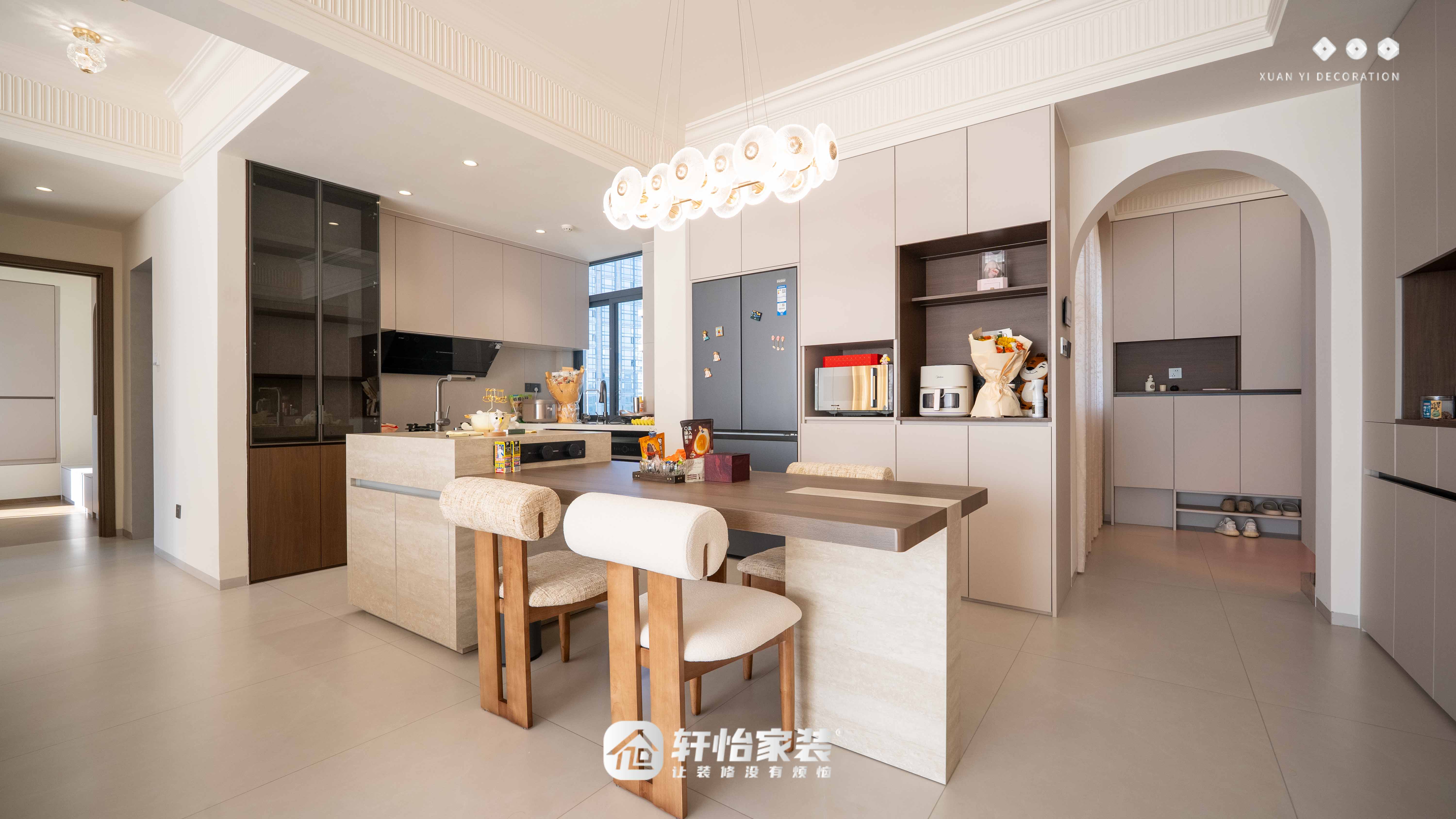 ✅ 全屋定制收纳系统,结合法式拱门、开放格等元素,实现功能与美学的统一