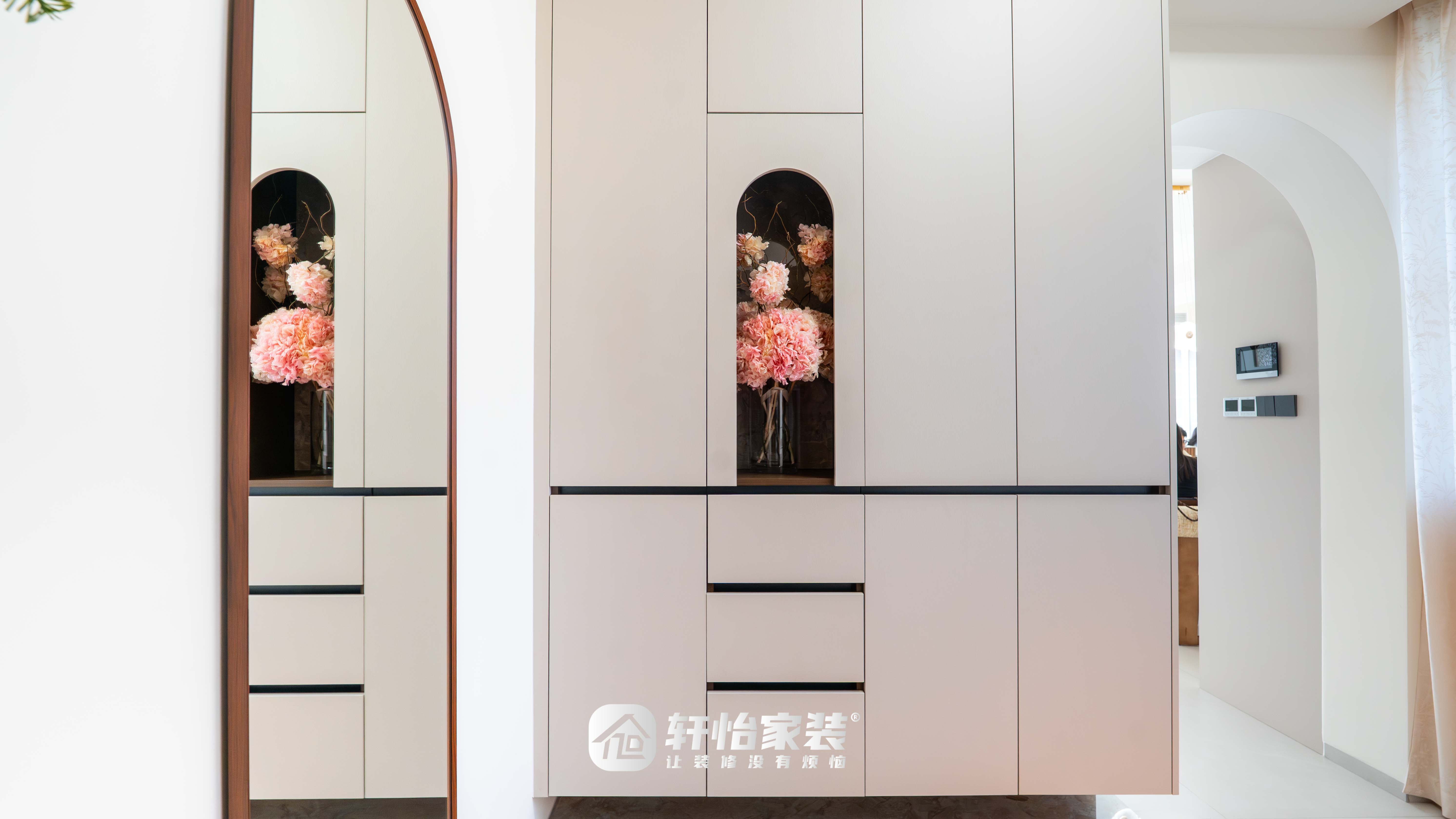 玄关以现代轻法式的精致格调,为归家时刻铺陈优雅序章。