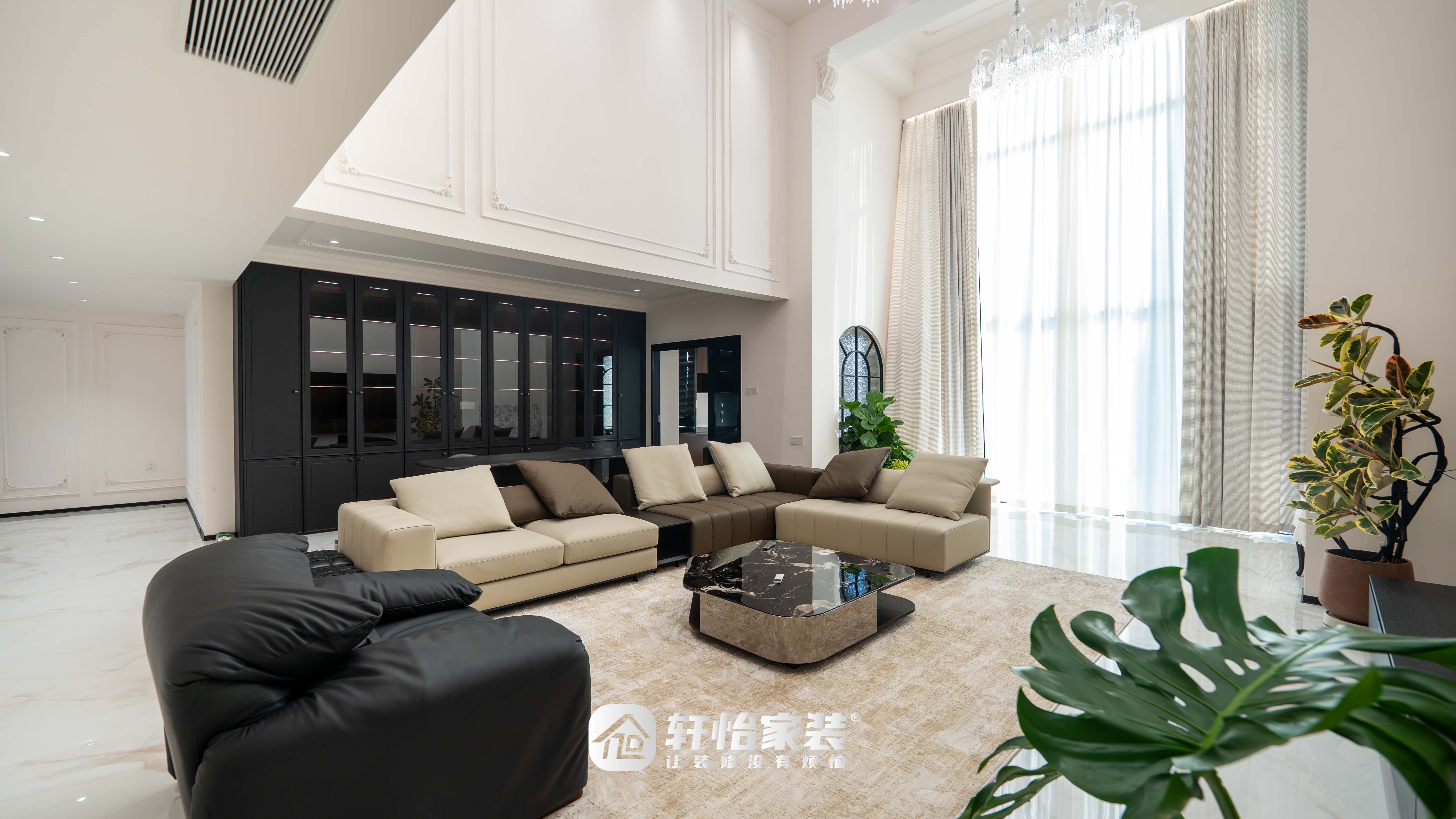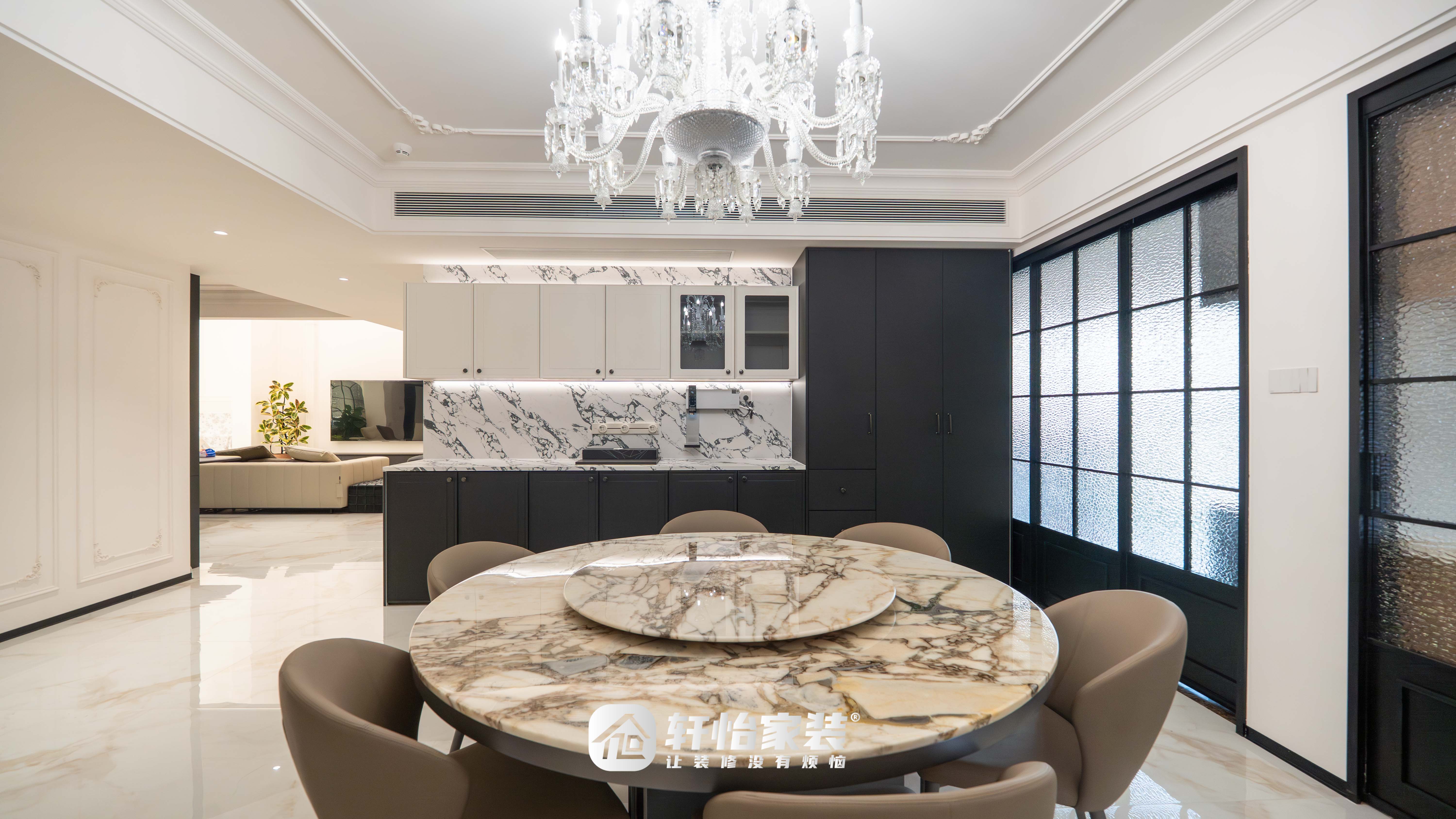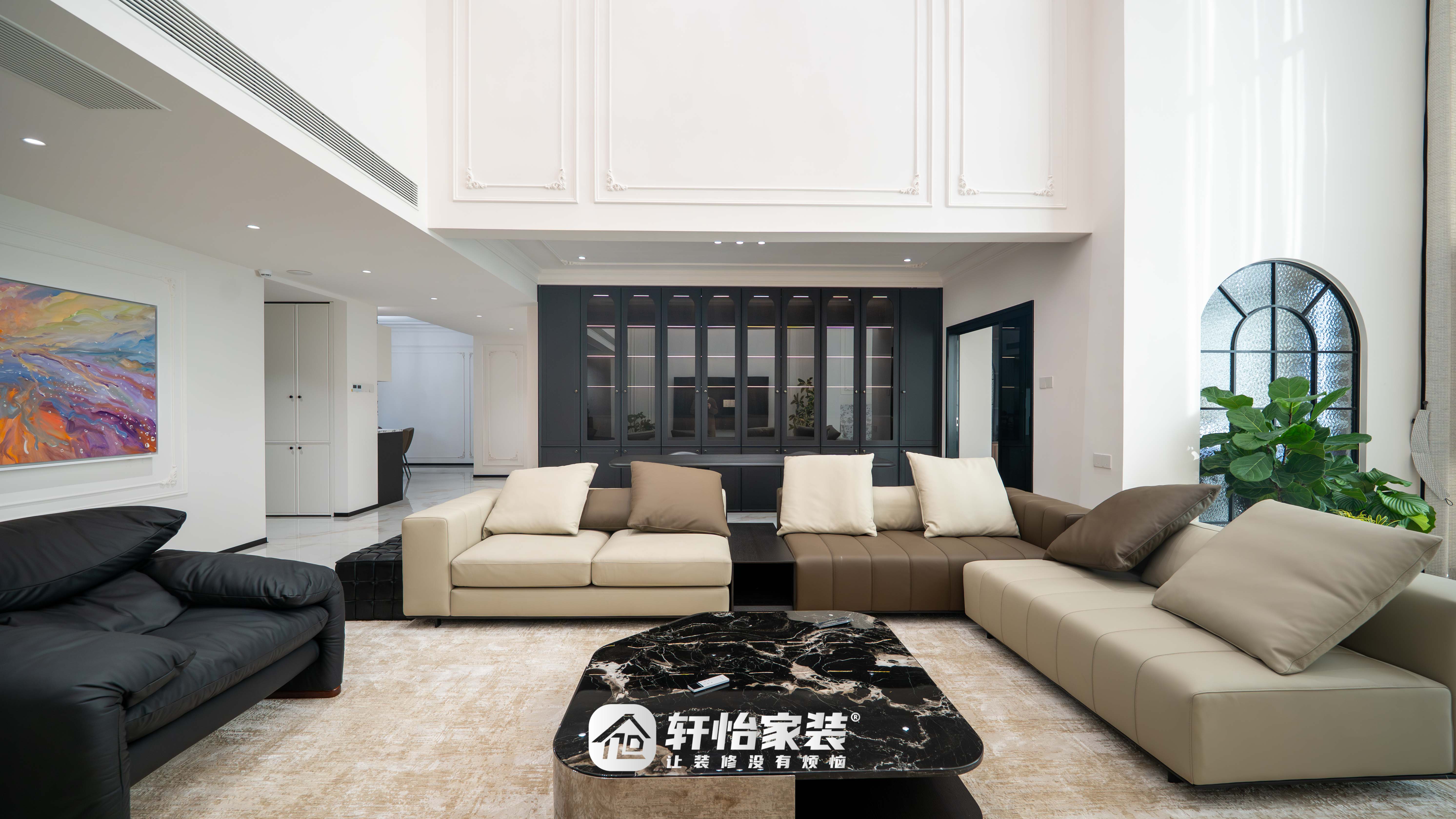 客厅以奶白色为基底,在法式优雅中融入了现代生活的沉稳质感。