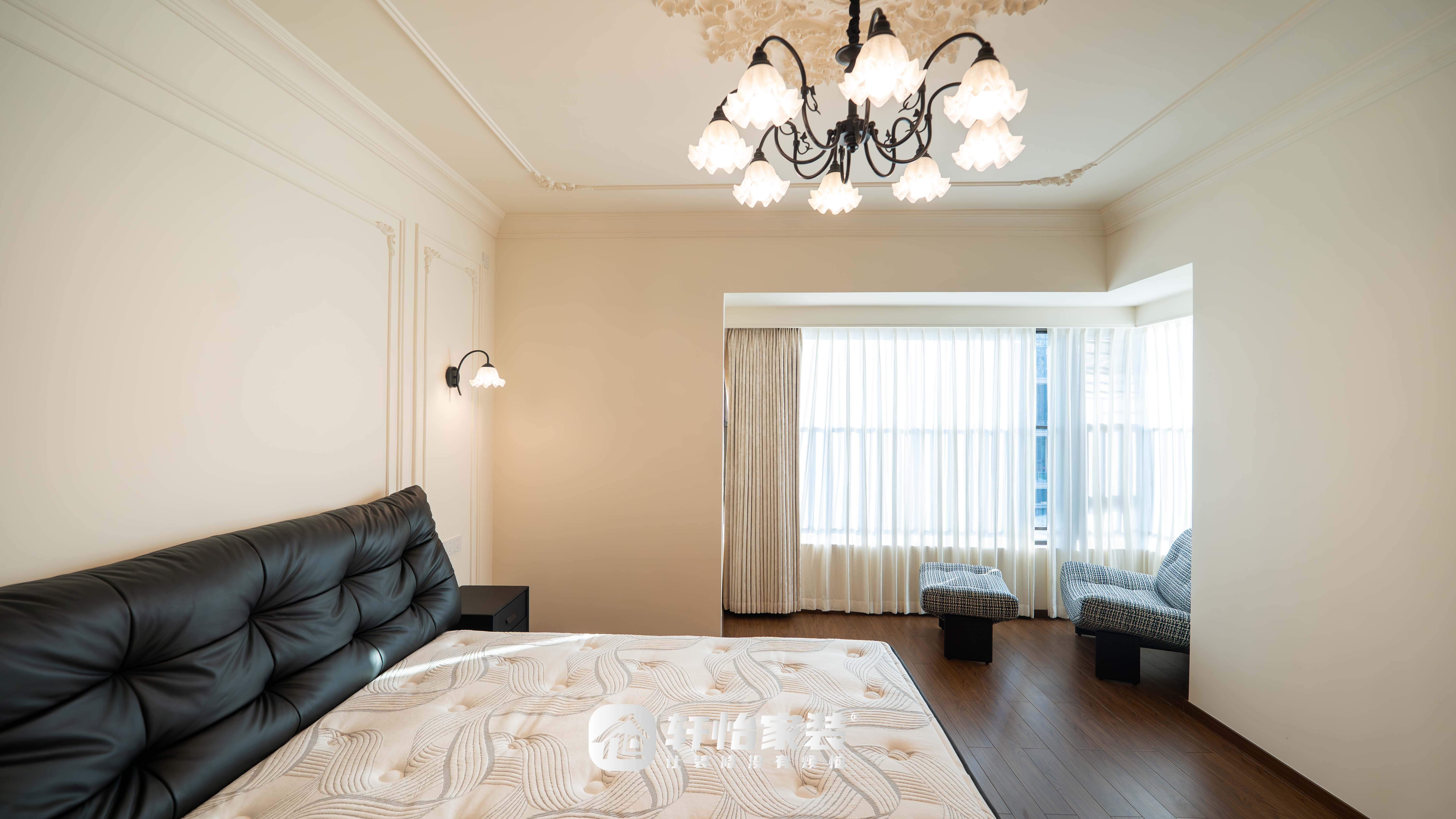 主卧以法式浪漫为基调,通过经典的黑白配色与精致软装,打造出兼具格调与舒适度的私享休憩空间。