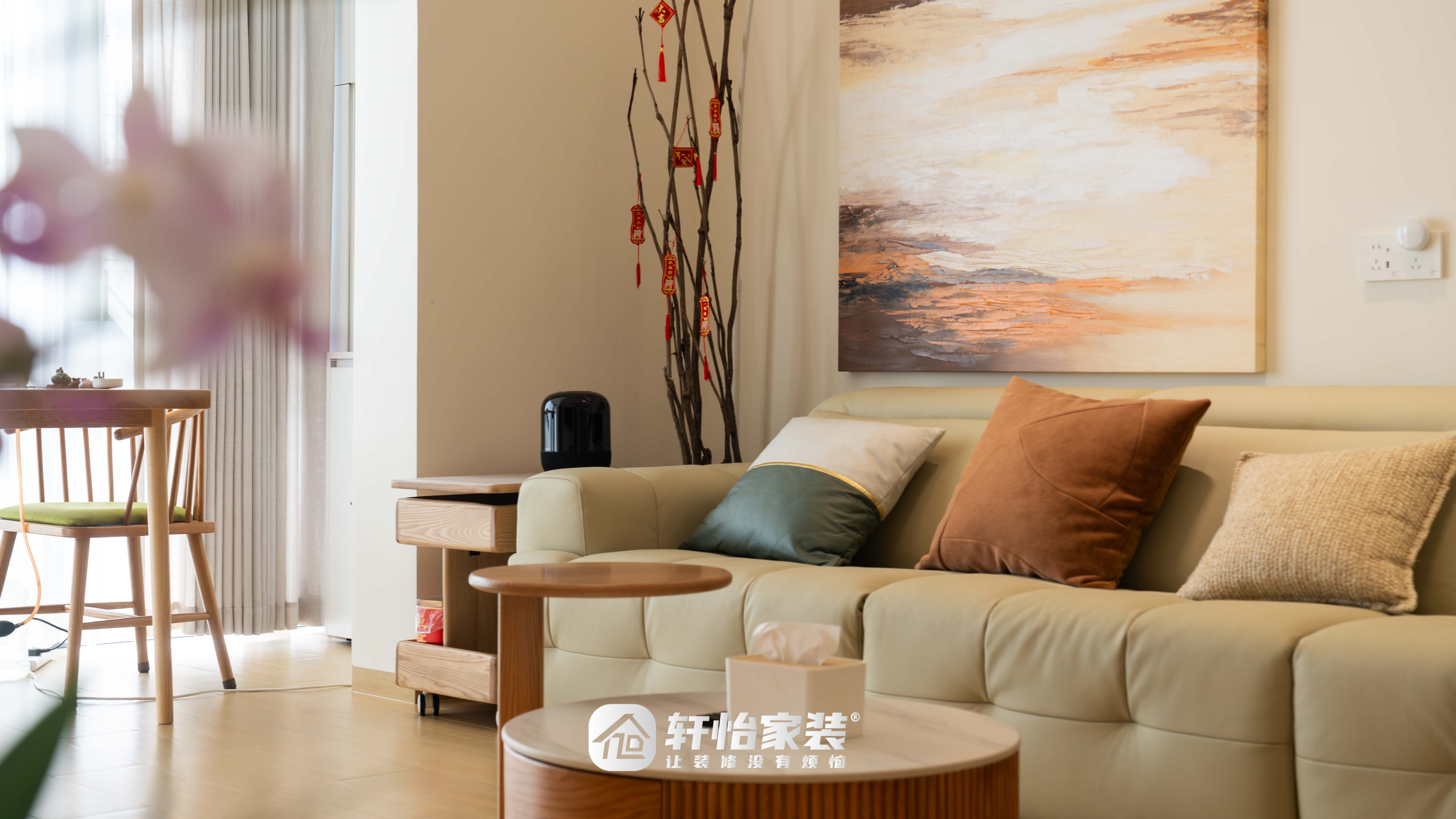 奶杏色沙发慵懒柔软,是归家后最安心的休憩倚靠;