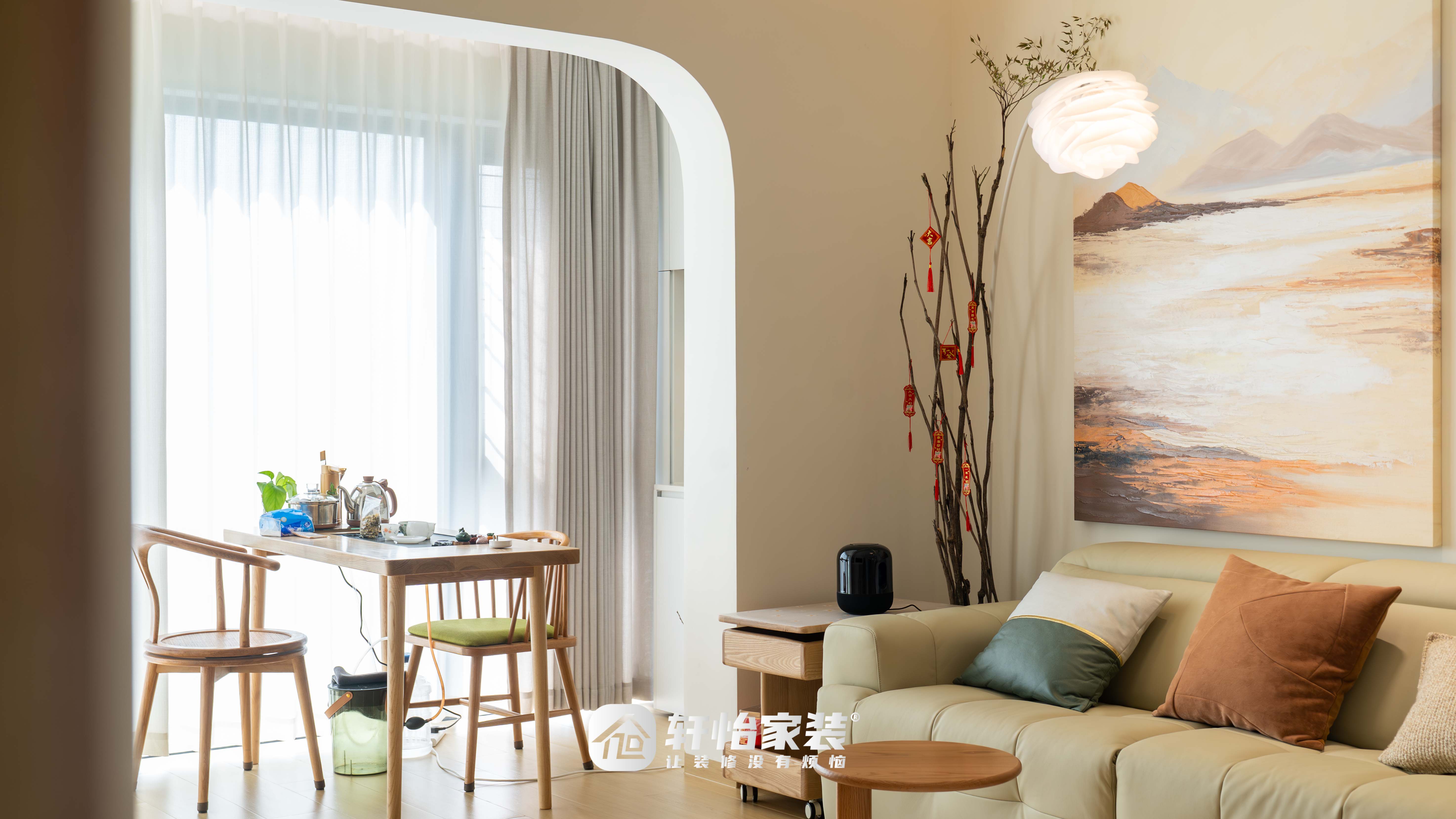 穿过雅致的平拱门,便抵达阳台休闲区。轻透纱帘滤去刺眼强光,只剩柔光铺满茶桌,静坐于此品茶、观景,将喧嚣隔绝在外,独享一方治愈的慢时光。