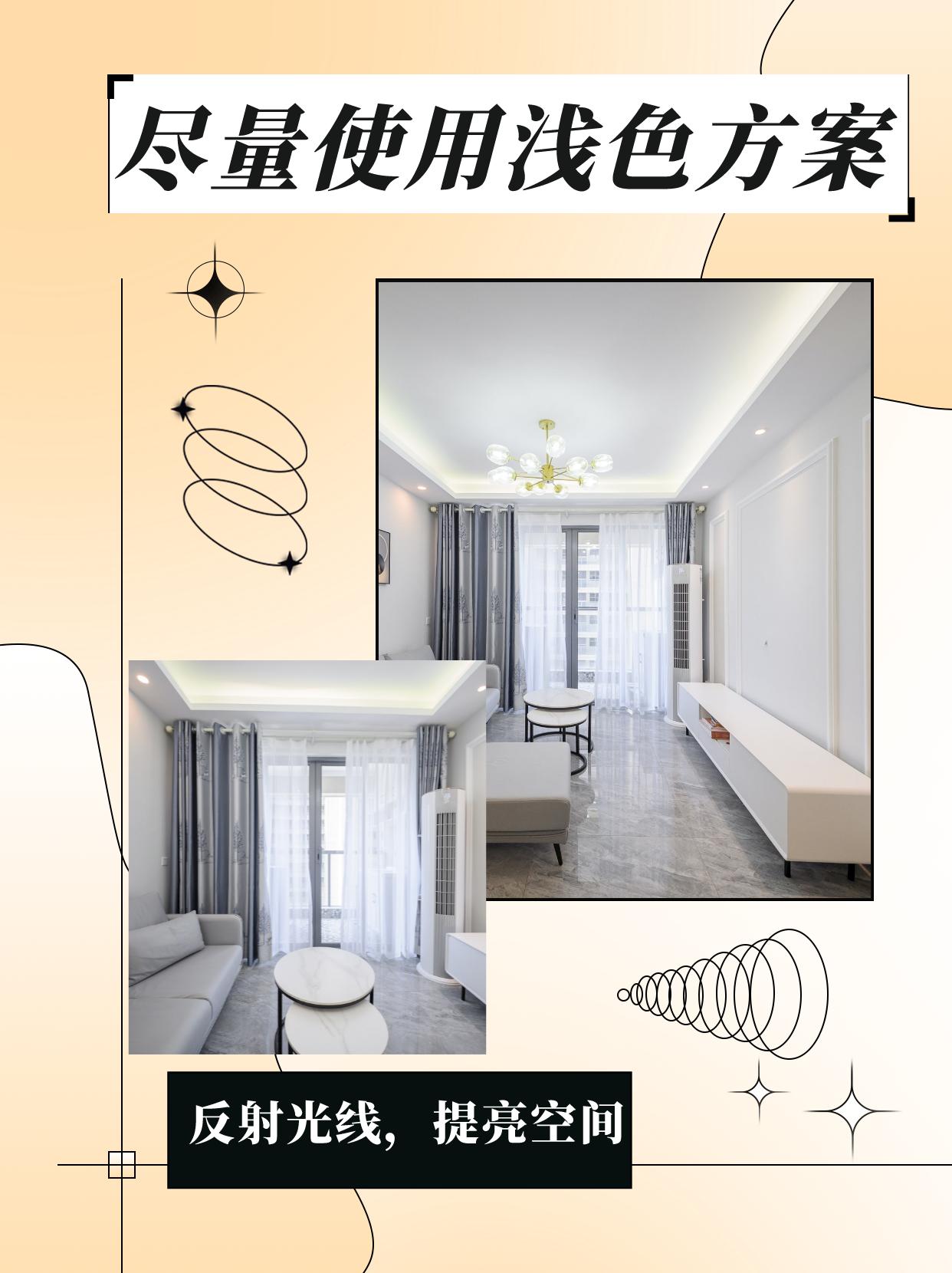 浅色调的装修材料和软装可以比较大限度地反射光线,提亮空间。