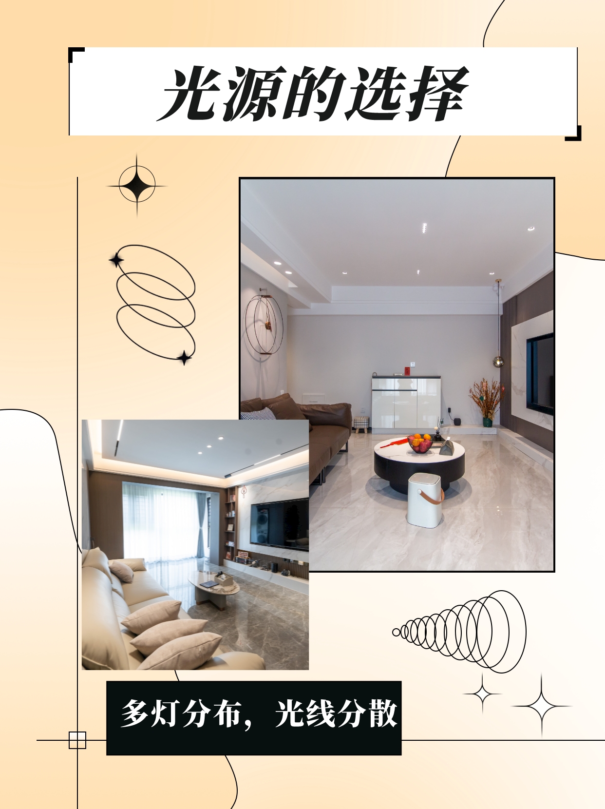 现在很多常见的装修方案在灯具的选择上还是会以吊灯或吸顶灯为主,这样光线过于集中,缺乏层次感,而且一些角落也容易被照亮,所以我们可以建议大家可以尝试在光源上做一些小的调整,取消传统的主灯,采用多灯分布,设计一些环境光辅助,这样光线可以