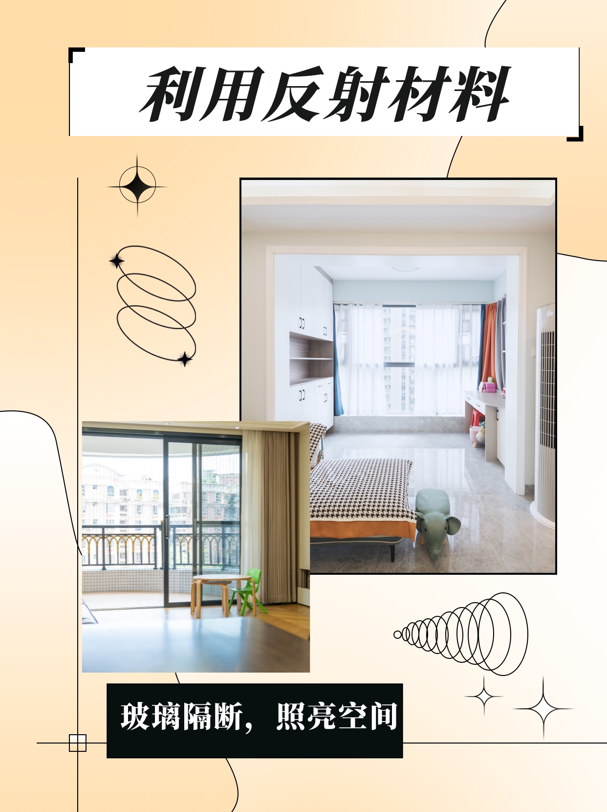 对于非私密空间,使用玻璃隔断来增加空间内的光线共享,或使用更大的镜子来反射光线,照亮空间。