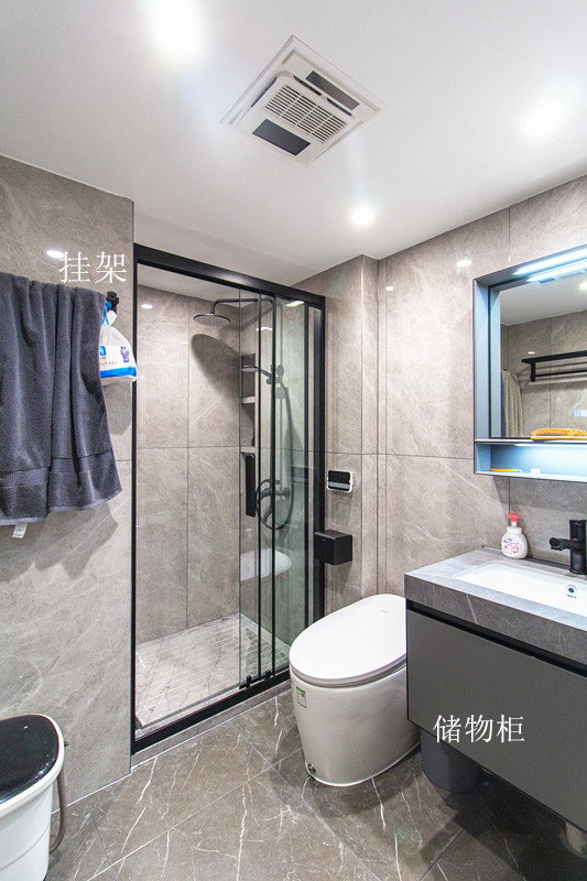 卫生间的墙面可以被用来提供额外的存储空间。在墙上安装一些储物柜和挂架,可以帮助您利用墙面空间,并将小物品有序地存储起来。