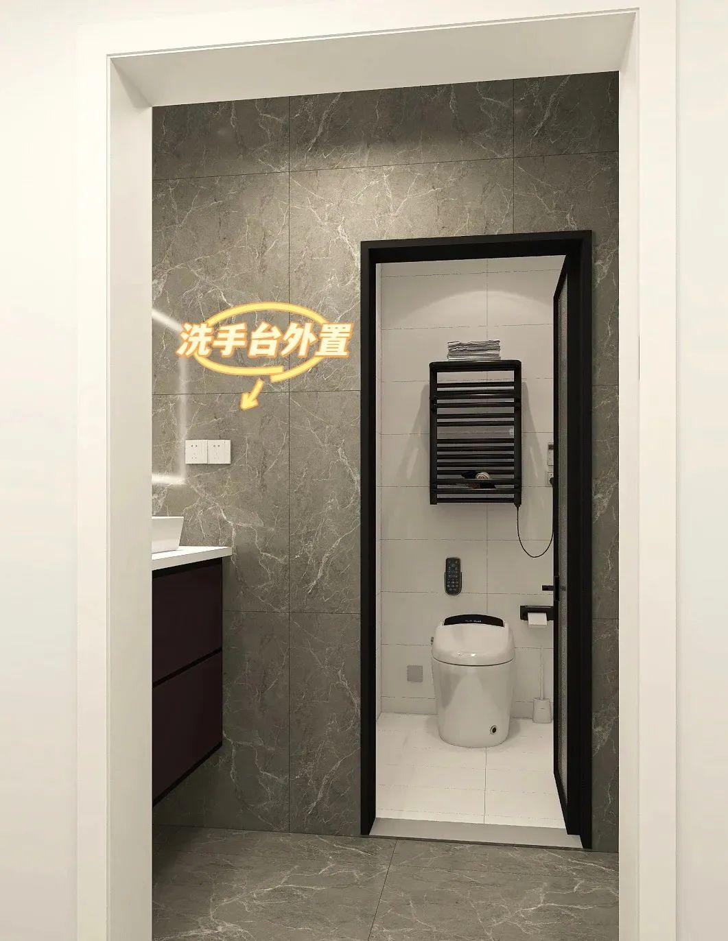 卫生间洗手台外置真的很方便,里面的人用卫生间,也不耽误外面的人洗漱。