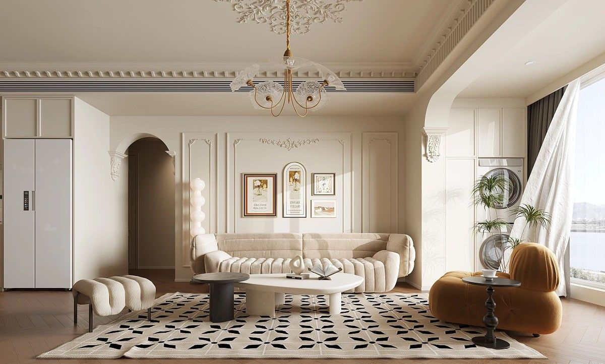 家里是复古或者法式风格,石膏线便是沙发背景墙的**佳装饰。
