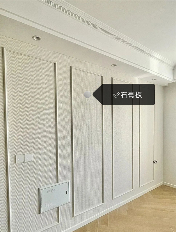 如果墙面较大,可以选择多个“口”字造型,平铺或上下组合;想要设计层次感,可以规划双层石膏线,形成“回”字型设计,内部石膏线可以比外部的更细一点;
