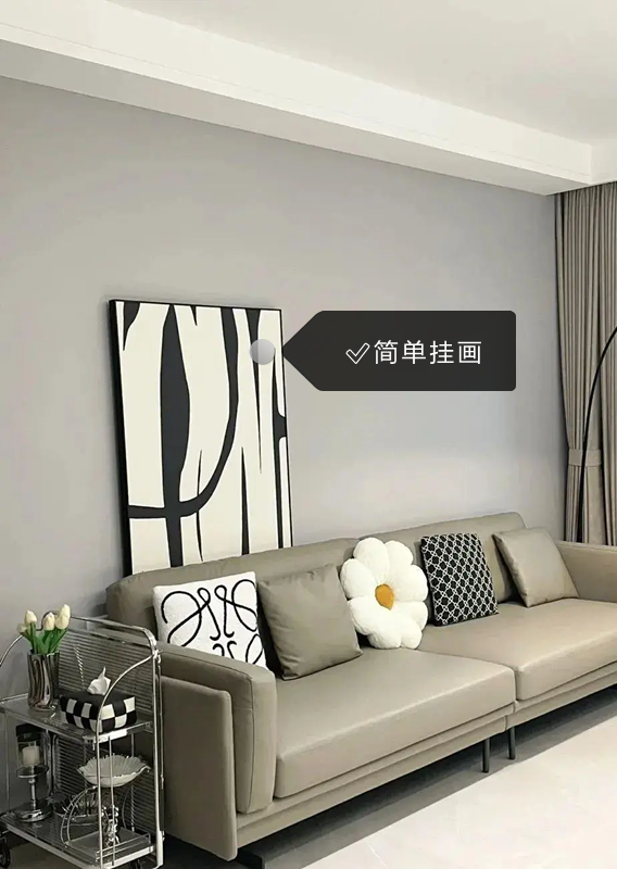无论是单幅挂画,还是多幅挂画组合,无论是靠在墙面,还是挂在墙面上,只要摆放得当,都会是客厅的加分项。