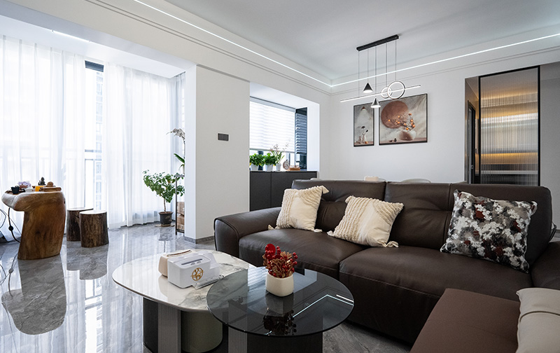 客厅适老化设计重点是“路径顺畅”,避免尖角、避免台阶、避免杂乱。