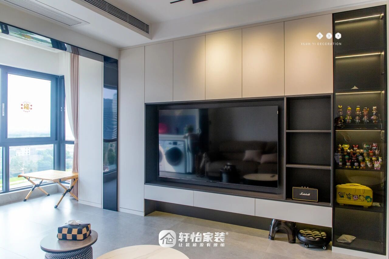 随着居住时间延长,收纳需求增加。电视背景墙是较好收纳空间,留出电视机位后,其余部分做成封闭或半封闭柜子,既实用又美观。轩怡家装强调,这是装修必看的高赞建议。