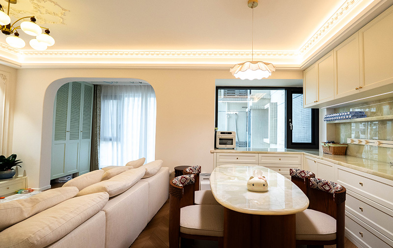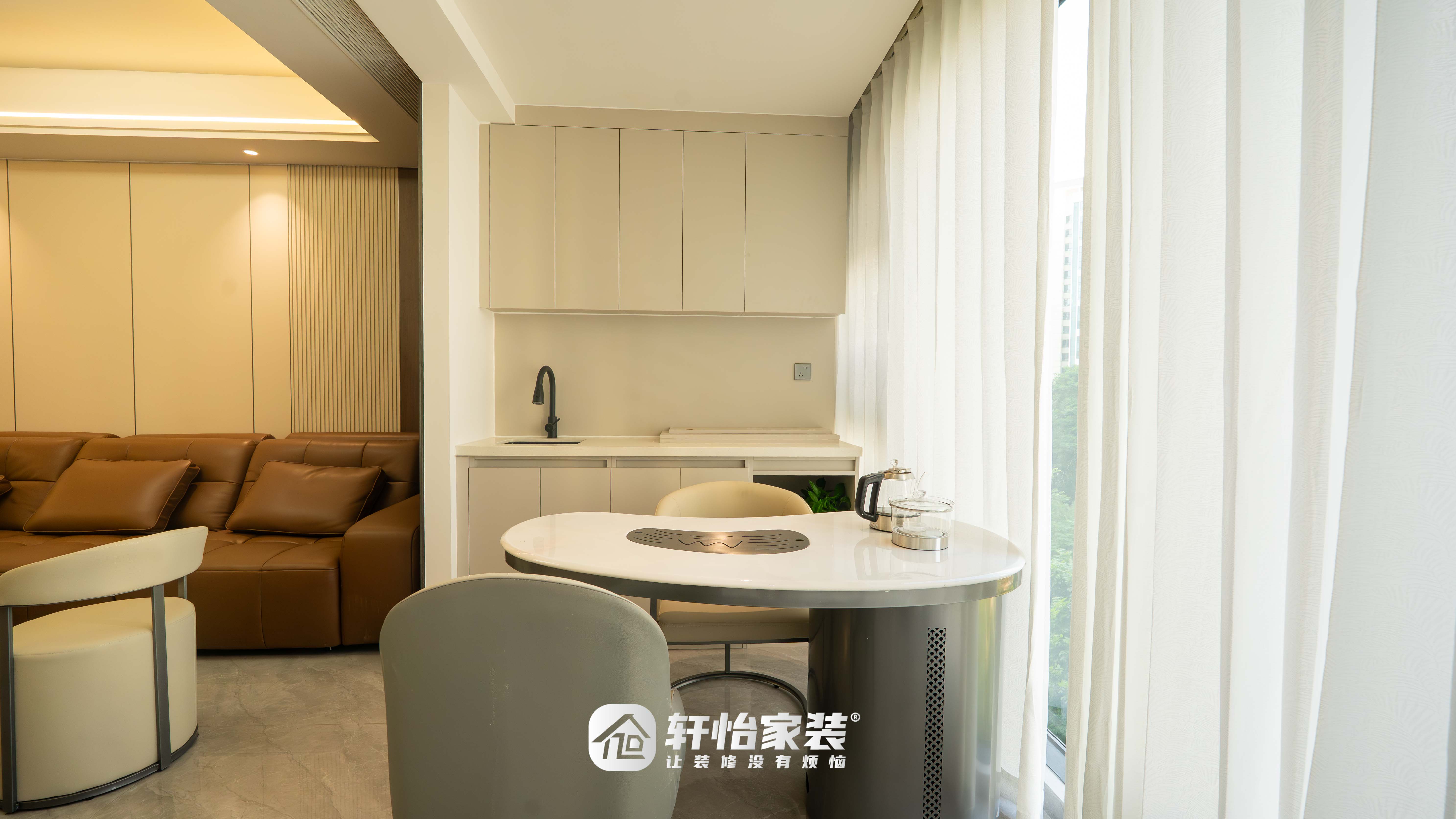 封闭后的阳台可灵活改造为洗衣区、书房、茶室或健身区,尤其对于小户型装修而言,相当于白赚几平米!轩怡家装建议将阳台与客厅打通,视觉瞬间放大一倍。