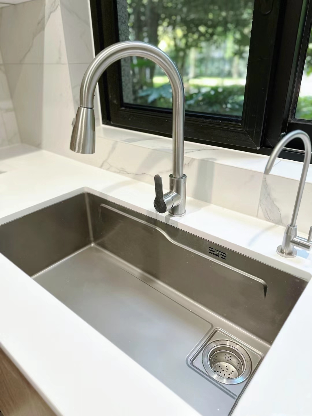 建议一定选单槽,面积足够大,锅碗瓢盆都能放进去,洗刷起来非常方便。