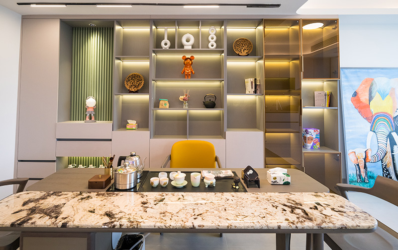 高利用率:高脚边几、餐边柜,让视觉更轻盈。