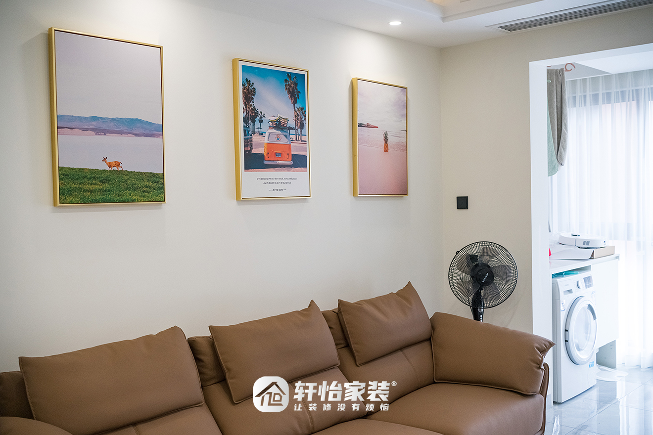 风格协调定基调:装饰画是客厅风格的延伸与强化。如果你的家是现代简约风,一幅几何抽象画就比古典油画更合适。记住:沙发背景墙挂画的关键“和谐”,而非抢戏。