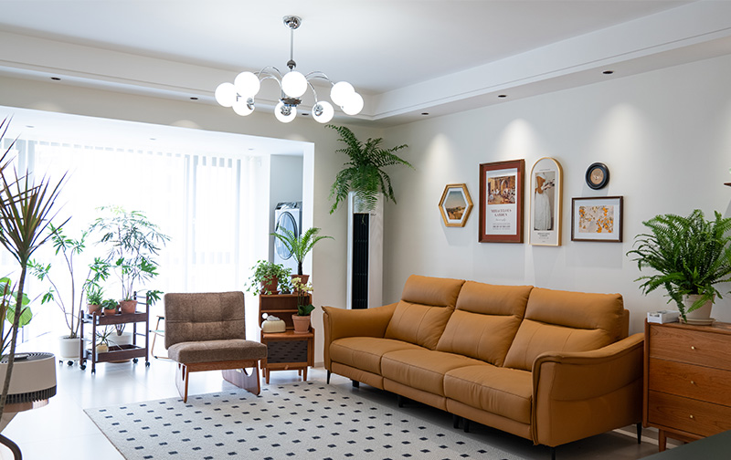色彩呼应出彩:画作的颜色建议能从沙发、抱枕、地毯或窗帘中提取。选择与之同色系或互补色的色彩,能让整体空间色彩关联性更强,显得设计感十足。