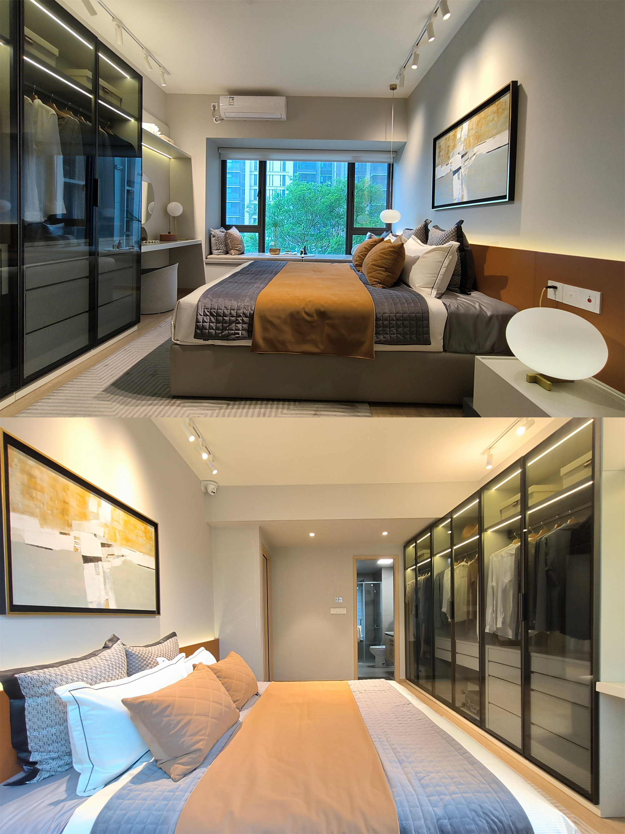 2、局部照明:床头灯、床头小夜灯、衣柜感应灯