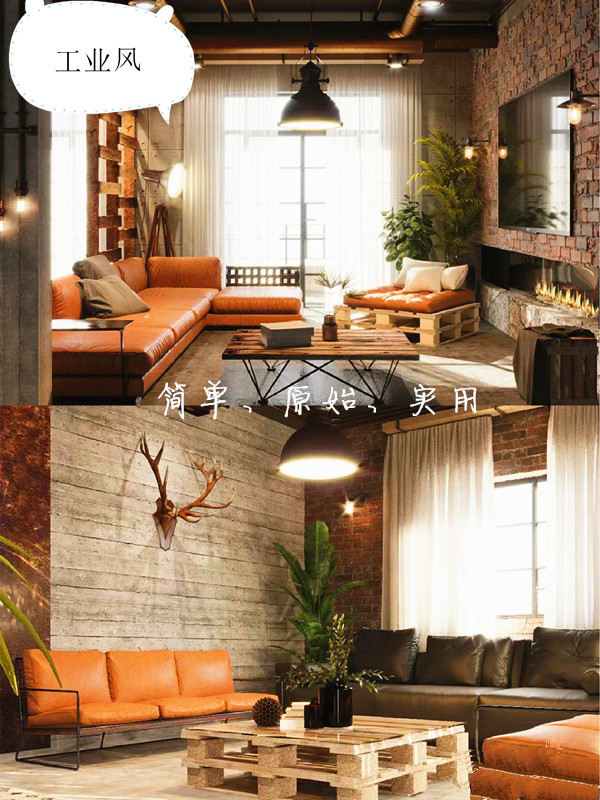 工业风格的家居装修通常强调简单、原始、实用。选择沙发时,可以选择皮质或织物材质的沙发,如深色皮革或粗糙的织物。选择线条简单、结构明显的沙发,如金属框架和木质扶手,以搭配工业风格的家具。