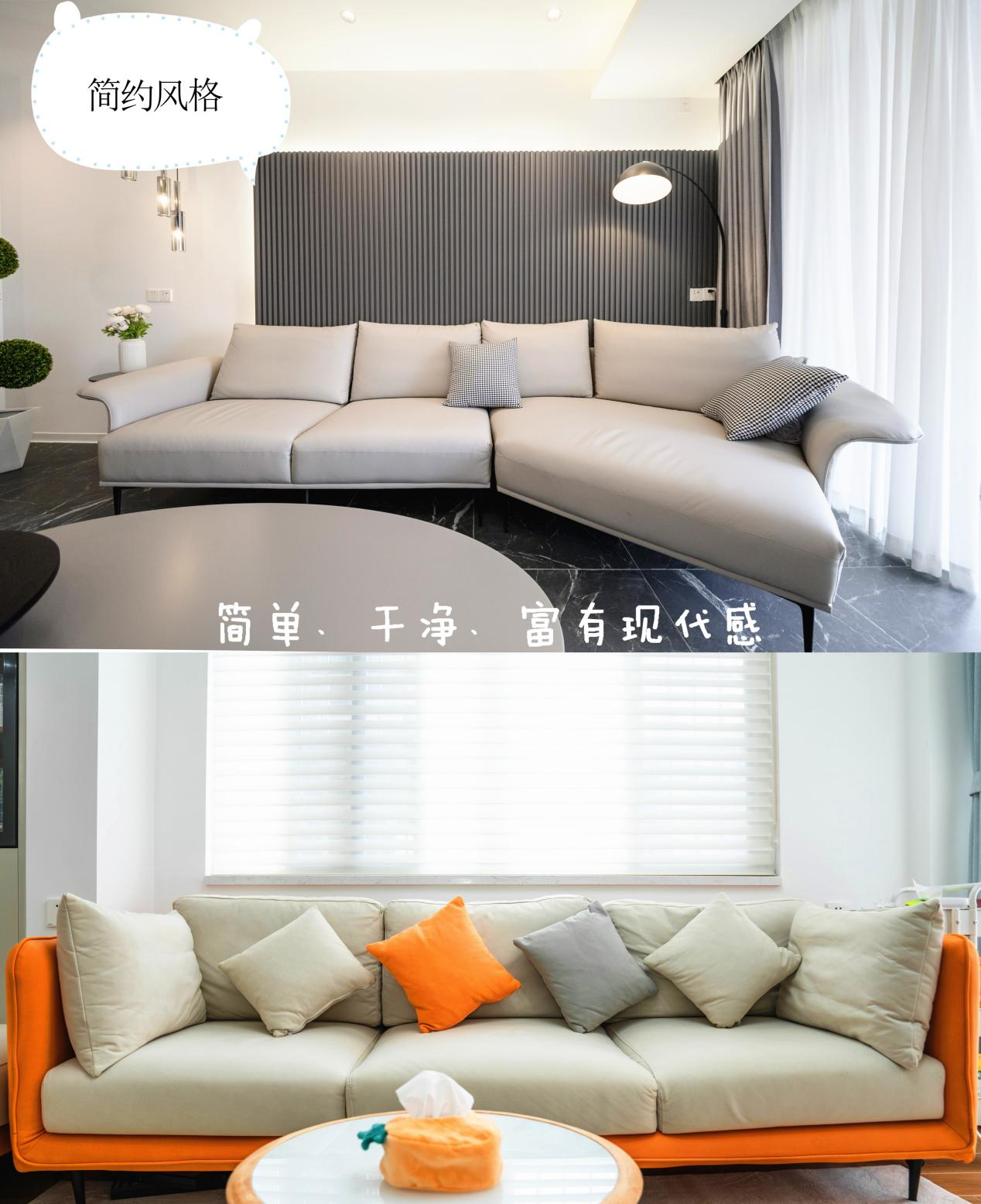 现代简约风格的家居装修通常强调简单、干净、富有现代感。选择沙发时,可以选择无花纹、无图案的沙发,如纯色织物或皮质沙发。选择简单的线条和几何形状的沙发,以搭配现代简约风格的家具。