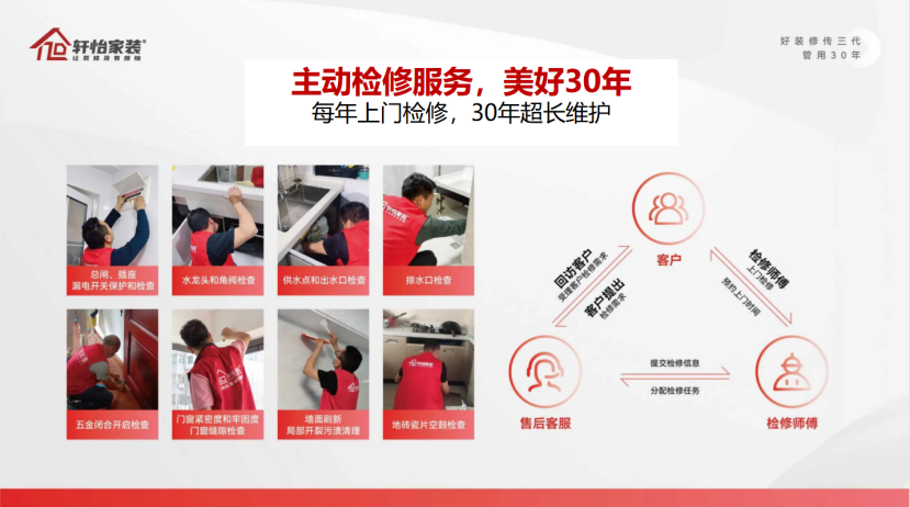 在本次升级中,轩怡家装进一步强化“主动型售后”理念,通过主动回访、周期检查、问题前置等机制,将售后从“问题出现后的修复”,前移至“问题发生前的防住”。