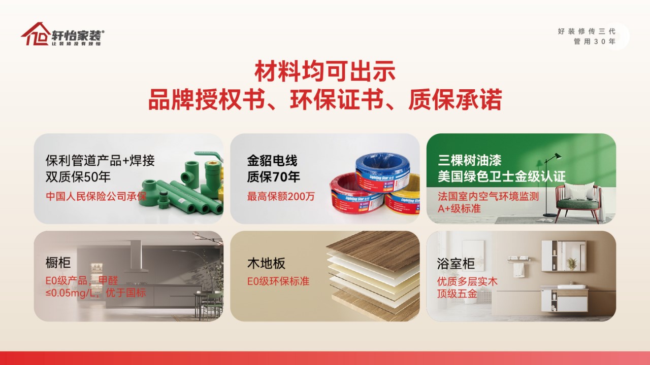 在家装选材时,很多人都有这样的感受:市场材料品牌繁多、宣传话术令人眼花缭乱,终只能依赖价格做决定。选择低价产品担心质量绿色不达标,选购好的材料又怕不符合实际需求,花了冤枉钱。更让人不安的是,那些宣称"进口品牌""零甲醛"的材料真实性无从证书,“10年质保”的承诺也难以落地。