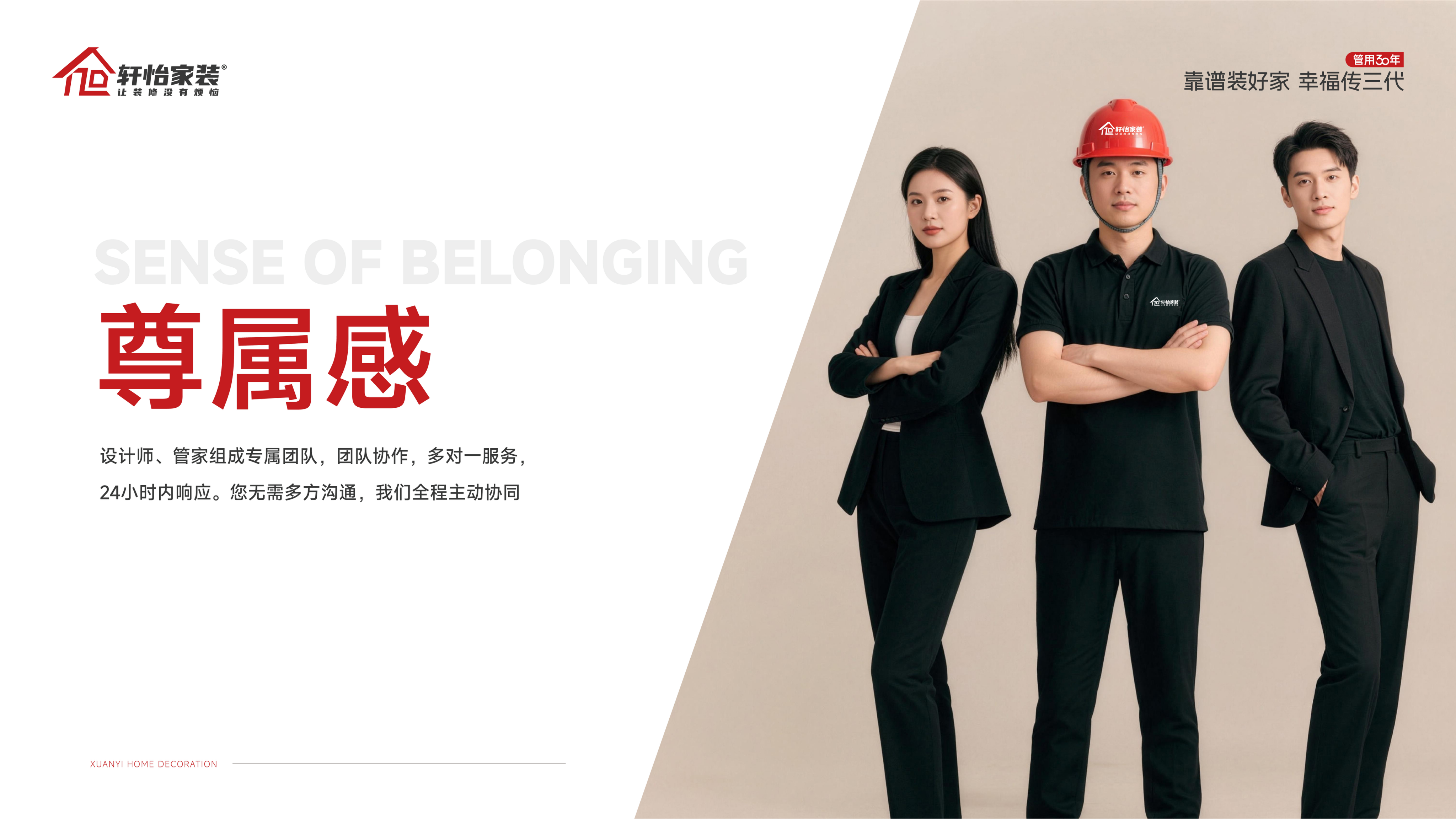 设计师、管家组成专属团队,团队协作,多对一服务,24小时内响应。您无需多方沟通,我们全程主动协同。