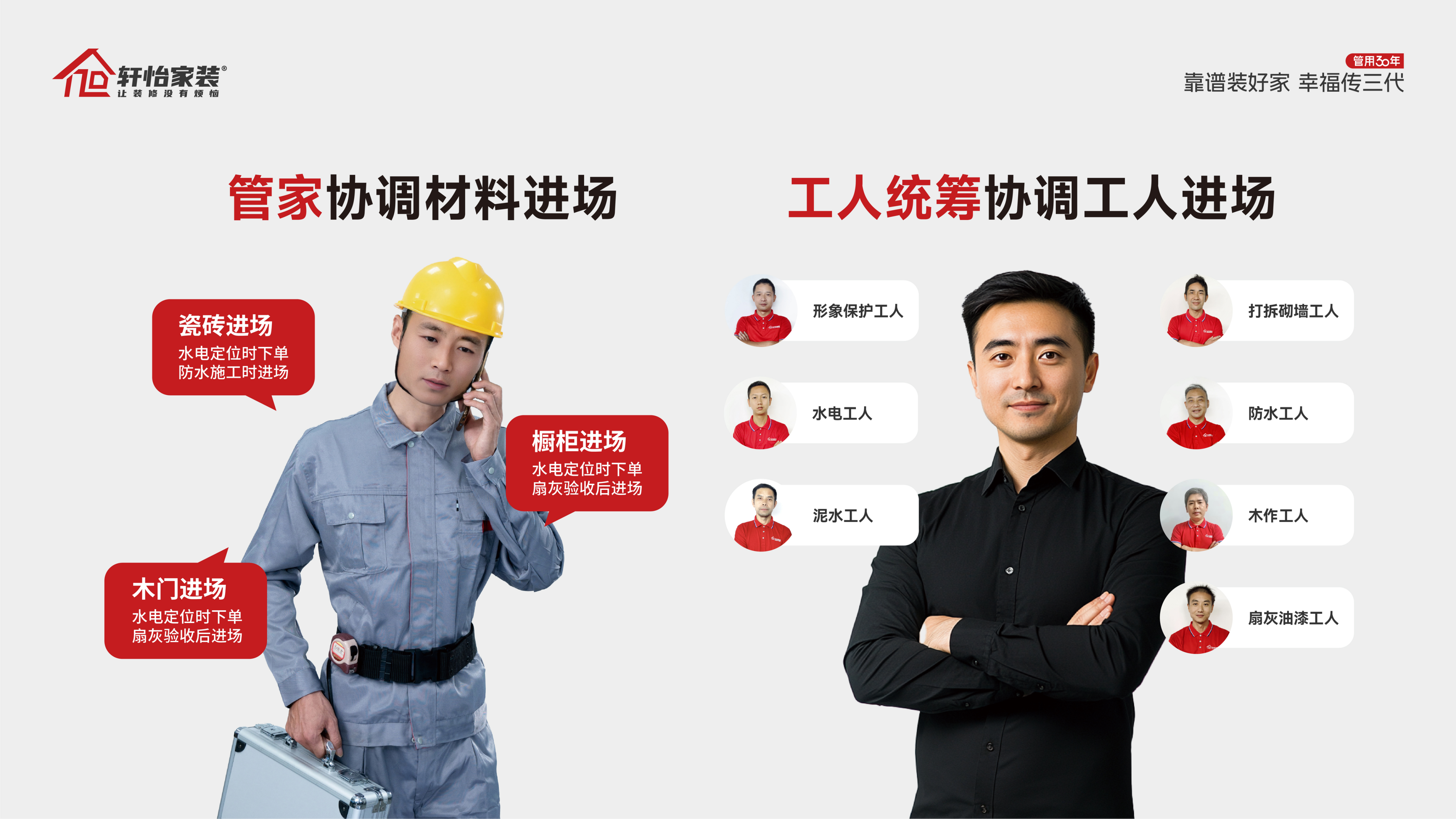 专职协调各工种衔接,确保工序流畅,工期准时,协同管家、业主进行水电和竣工验收